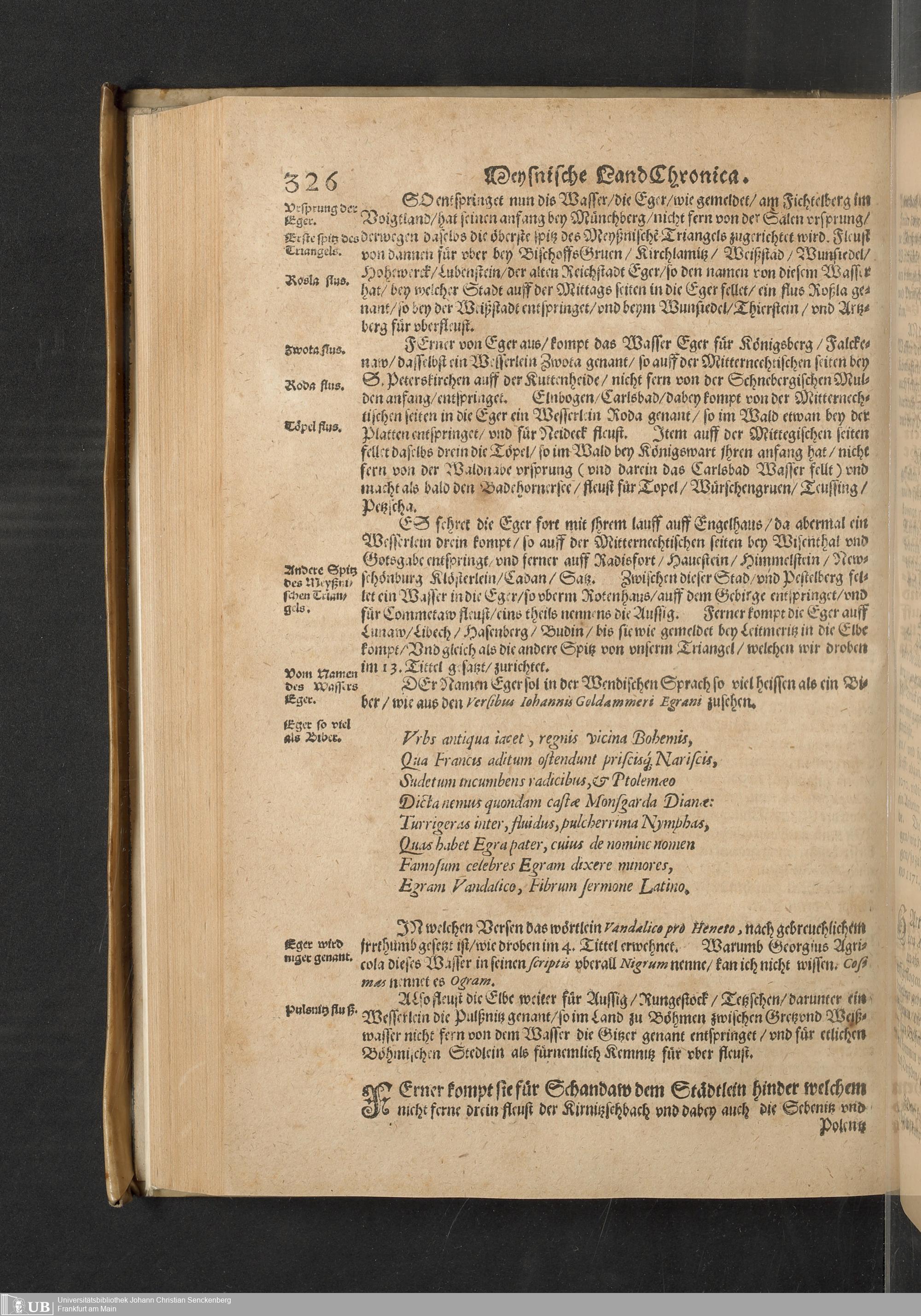 Meißnische Land vnd Berg-Chronica, : Jn welcher ein vollnstendige description des Landes, so zwischen der Elbe, Sala vnd Südödischen Behmischen gebirgen gelegen, So wol der dorinnen begriffenen auch anderer Bergwercken, sampt zugehörigen Metall vn[d] Metallar beschreibungen. : Mit einuorleibten fürnehmen Sächsischen, Düringischen vnd Meißninschen Historien. : Auch nicht wenig Tafeln, Wapen vnd Antiquiteten, derer etliche in Kupffer gestochen. / Gestellet durch Petrum Albinum M. Churf. Sech. Secr. ..