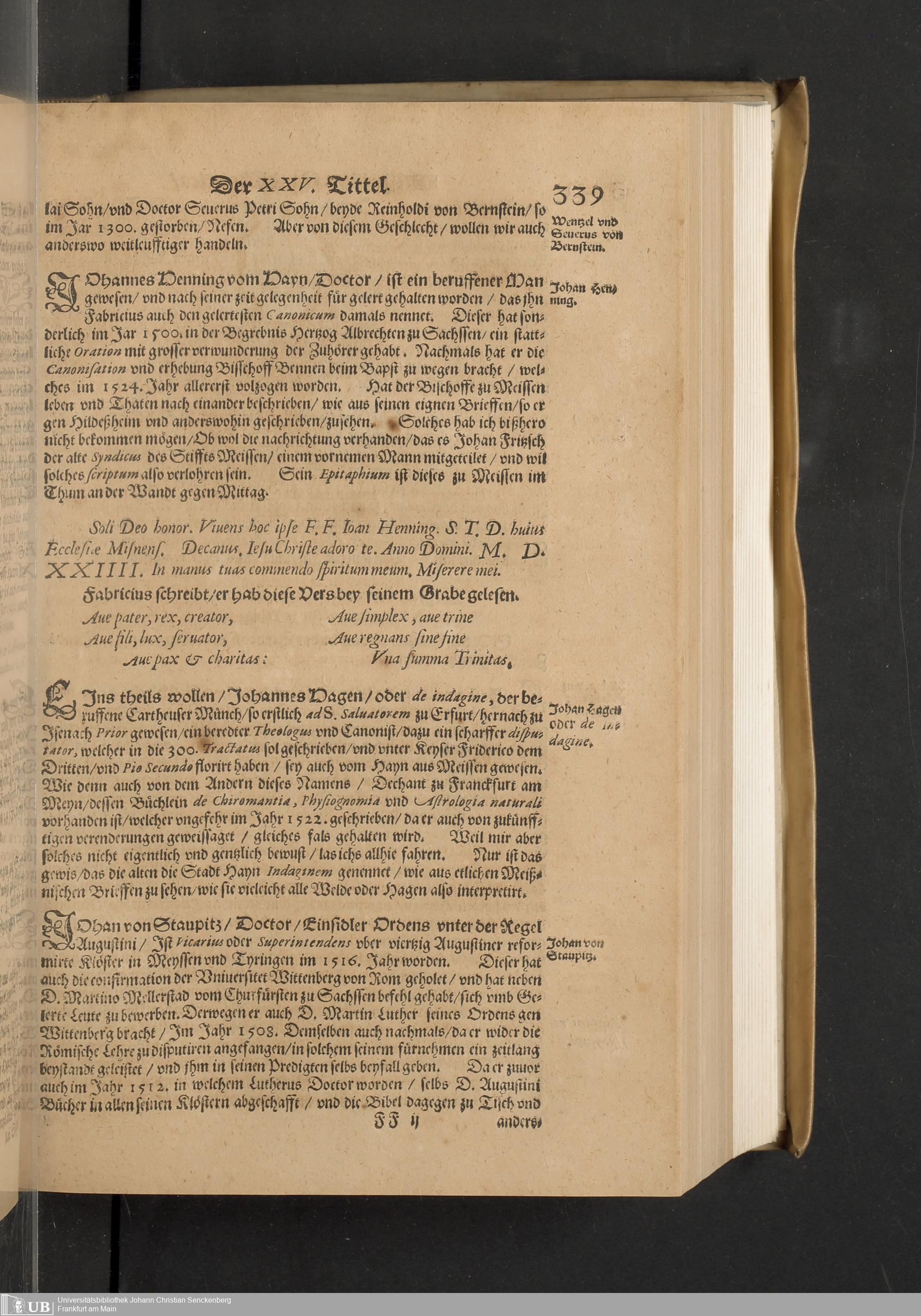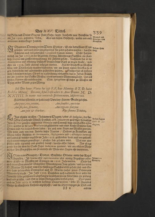 Meißnische Land vnd Berg-Chronica, : Jn welcher ein vollnstendige description des Landes, so zwischen der Elbe, Sala vnd Südödischen Behmischen gebirgen gelegen, So wol der dorinnen begriffenen auch anderer Bergwercken, sampt zugehörigen Metall vn[d] Metallar beschreibungen. : Mit einuorleibten fürnehmen Sächsischen, Düringischen vnd Meißninschen Historien. : Auch nicht wenig Tafeln, Wapen vnd Antiquiteten, derer etliche in Kupffer gestochen. / Gestellet durch Petrum Albinum M. Churf. Sech. Secr. ..