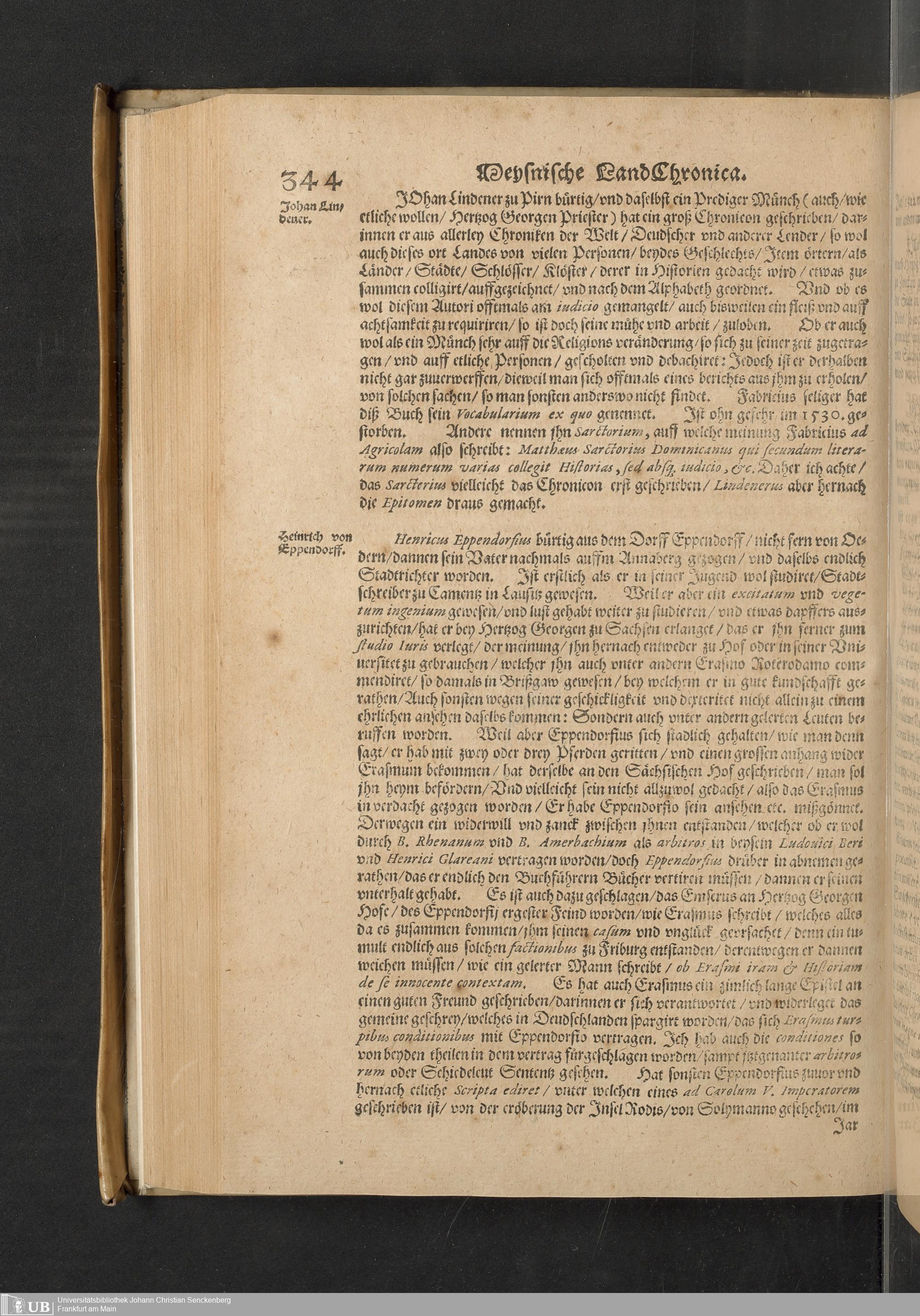 Meißnische Land vnd Berg-Chronica, : Jn welcher ein vollnstendige description des Landes, so zwischen der Elbe, Sala vnd Südödischen Behmischen gebirgen gelegen, So wol der dorinnen begriffenen auch anderer Bergwercken, sampt zugehörigen Metall vn[d] Metallar beschreibungen. : Mit einuorleibten fürnehmen Sächsischen, Düringischen vnd Meißninschen Historien. : Auch nicht wenig Tafeln, Wapen vnd Antiquiteten, derer etliche in Kupffer gestochen. / Gestellet durch Petrum Albinum M. Churf. Sech. Secr. ..