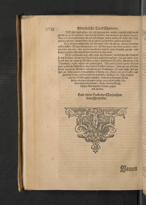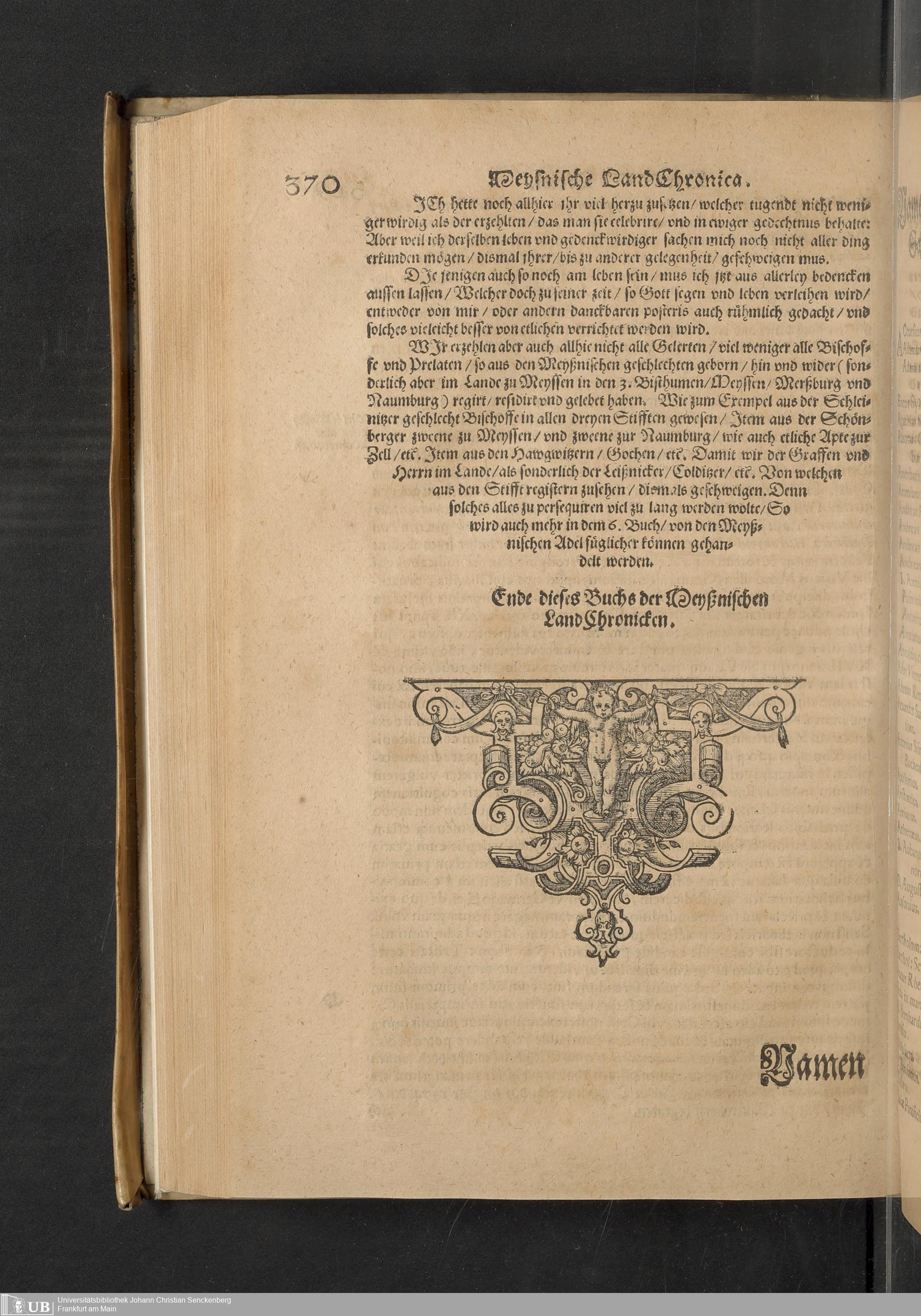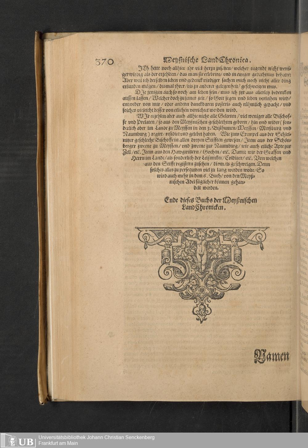 Meißnische Land vnd Berg-Chronica, : Jn welcher ein vollnstendige description des Landes, so zwischen der Elbe, Sala vnd Südödischen Behmischen gebirgen gelegen, So wol der dorinnen begriffenen auch anderer Bergwercken, sampt zugehörigen Metall vn[d] Metallar beschreibungen. : Mit einuorleibten fürnehmen Sächsischen, Düringischen vnd Meißninschen Historien. : Auch nicht wenig Tafeln, Wapen vnd Antiquiteten, derer etliche in Kupffer gestochen. / Gestellet durch Petrum Albinum M. Churf. Sech. Secr. ..