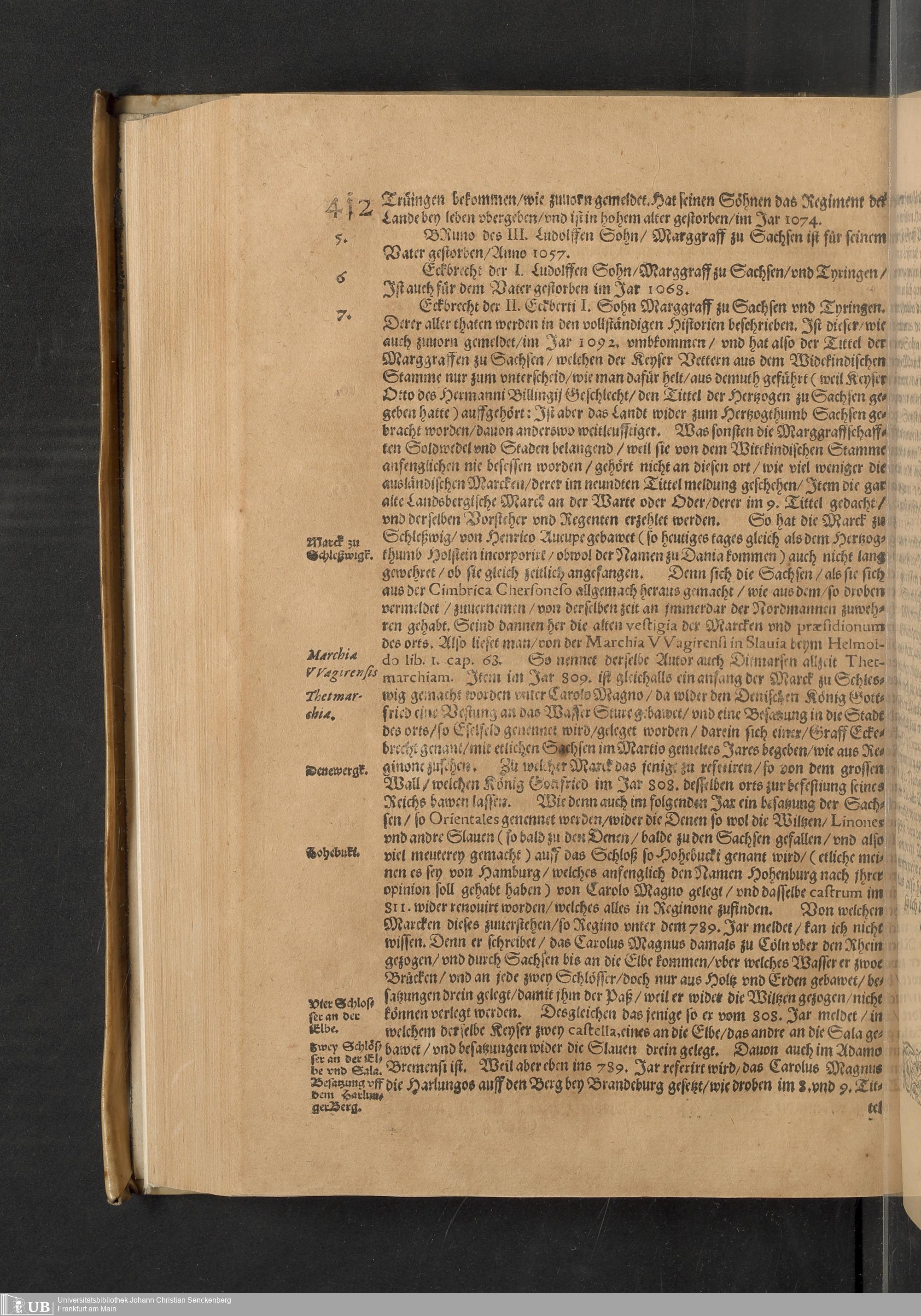 Meißnische Land vnd Berg-Chronica, : Jn welcher ein vollnstendige description des Landes, so zwischen der Elbe, Sala vnd Südödischen Behmischen gebirgen gelegen, So wol der dorinnen begriffenen auch anderer Bergwercken, sampt zugehörigen Metall vn[d] Metallar beschreibungen. : Mit einuorleibten fürnehmen Sächsischen, Düringischen vnd Meißninschen Historien. : Auch nicht wenig Tafeln, Wapen vnd Antiquiteten, derer etliche in Kupffer gestochen. / Gestellet durch Petrum Albinum M. Churf. Sech. Secr. ..