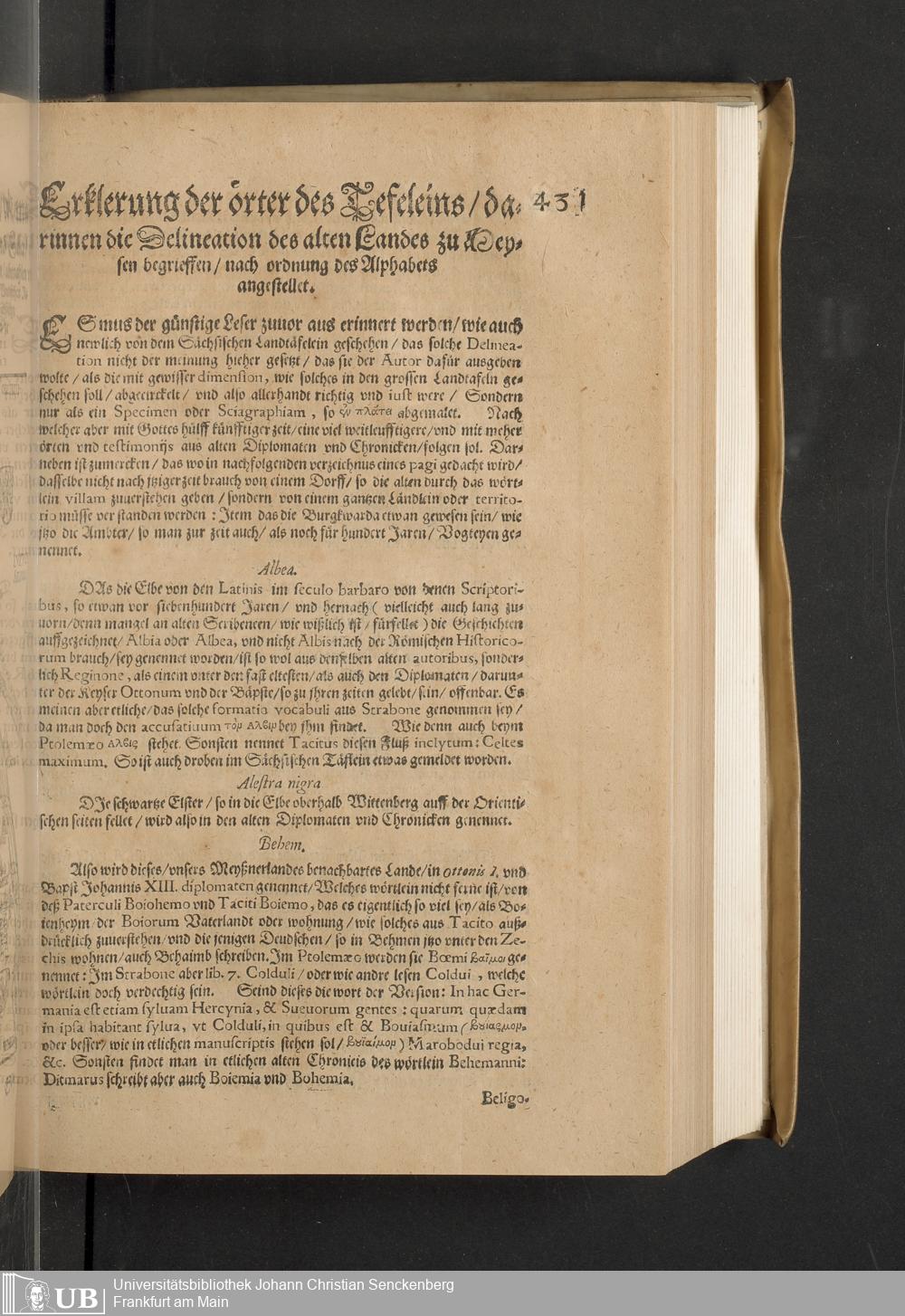 Meißnische Land vnd Berg-Chronica, : Jn welcher ein vollnstendige description des Landes, so zwischen der Elbe, Sala vnd Südödischen Behmischen gebirgen gelegen, So wol der dorinnen begriffenen auch anderer Bergwercken, sampt zugehörigen Metall vn[d] Metallar beschreibungen. : Mit einuorleibten fürnehmen Sächsischen, Düringischen vnd Meißninschen Historien. : Auch nicht wenig Tafeln, Wapen vnd Antiquiteten, derer etliche in Kupffer gestochen. / Gestellet durch Petrum Albinum M. Churf. Sech. Secr. ..