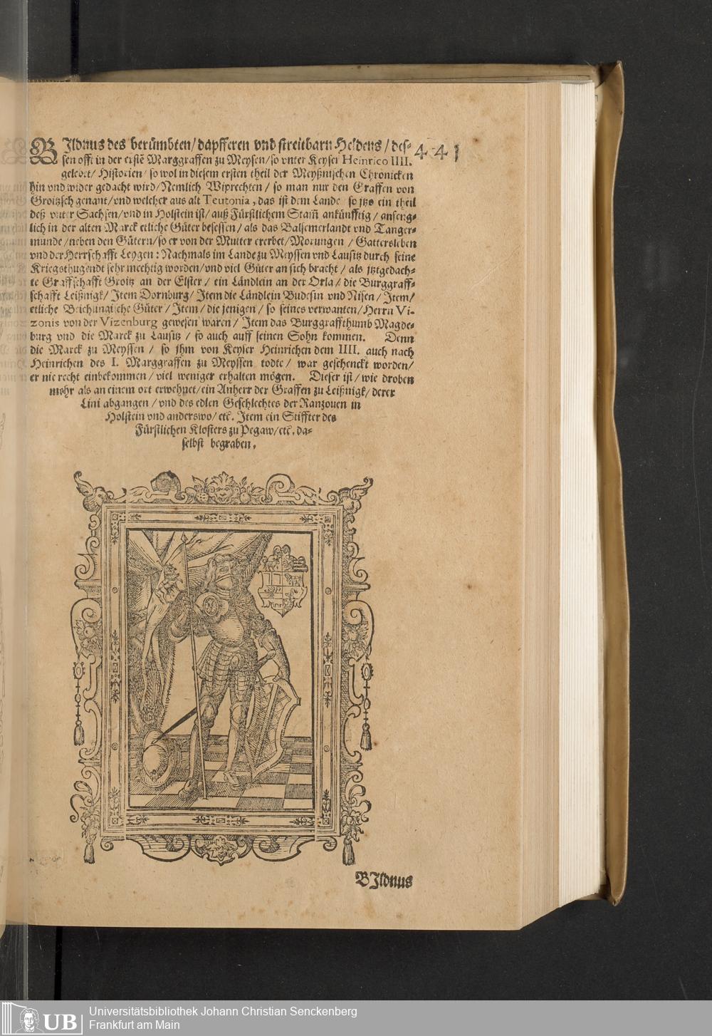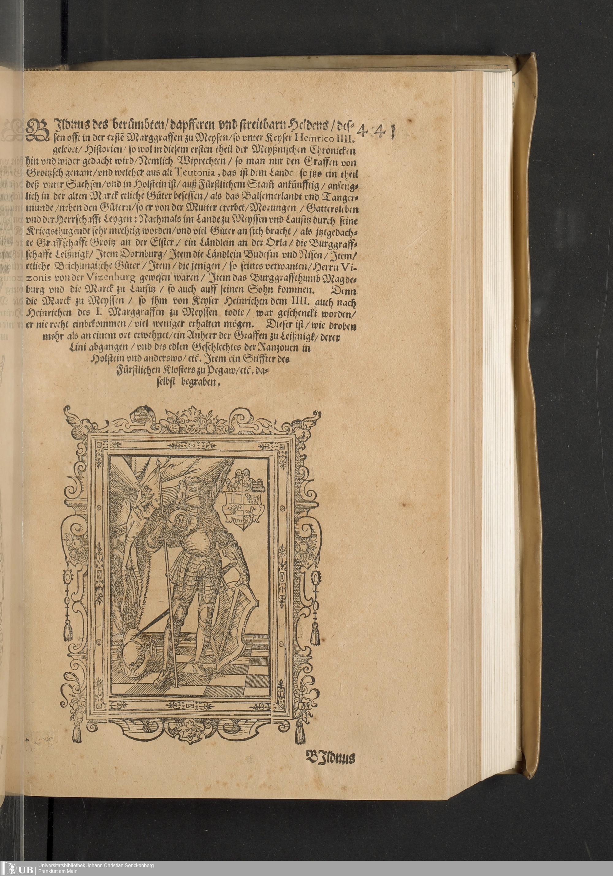 Meißnische Land vnd Berg-Chronica, : Jn welcher ein vollnstendige description des Landes, so zwischen der Elbe, Sala vnd Südödischen Behmischen gebirgen gelegen, So wol der dorinnen begriffenen auch anderer Bergwercken, sampt zugehörigen Metall vn[d] Metallar beschreibungen. : Mit einuorleibten fürnehmen Sächsischen, Düringischen vnd Meißninschen Historien. : Auch nicht wenig Tafeln, Wapen vnd Antiquiteten, derer etliche in Kupffer gestochen. / Gestellet durch Petrum Albinum M. Churf. Sech. Secr. ..