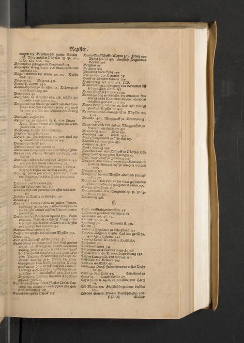 Meißnische Land vnd Berg-Chronica, : Jn welcher ein vollnstendige description des Landes, so zwischen der Elbe, Sala vnd Südödischen Behmischen gebirgen gelegen, So wol der dorinnen begriffenen auch anderer Bergwercken, sampt zugehörigen Metall vn[d] Metallar beschreibungen. : Mit einuorleibten fürnehmen Sächsischen, Düringischen vnd Meißninschen Historien. : Auch nicht wenig Tafeln, Wapen vnd Antiquiteten, derer etliche in Kupffer gestochen. / Gestellet durch Petrum Albinum M. Churf. Sech. Secr. ..