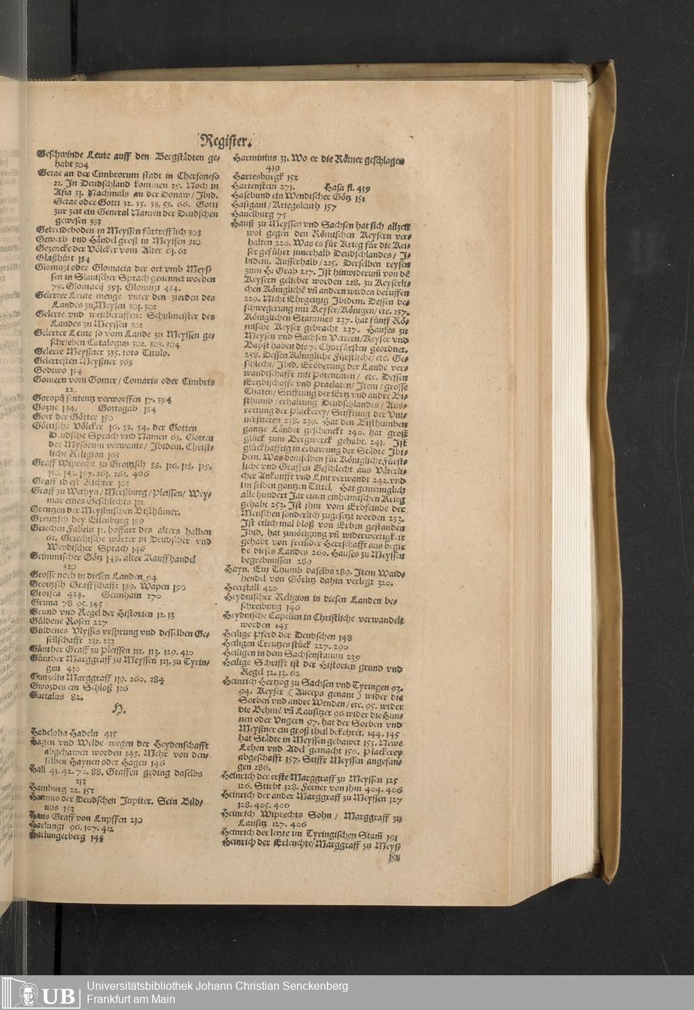 Meißnische Land vnd Berg-Chronica, : Jn welcher ein vollnstendige description des Landes, so zwischen der Elbe, Sala vnd Südödischen Behmischen gebirgen gelegen, So wol der dorinnen begriffenen auch anderer Bergwercken, sampt zugehörigen Metall vn[d] Metallar beschreibungen. : Mit einuorleibten fürnehmen Sächsischen, Düringischen vnd Meißninschen Historien. : Auch nicht wenig Tafeln, Wapen vnd Antiquiteten, derer etliche in Kupffer gestochen. / Gestellet durch Petrum Albinum M. Churf. Sech. Secr. ..