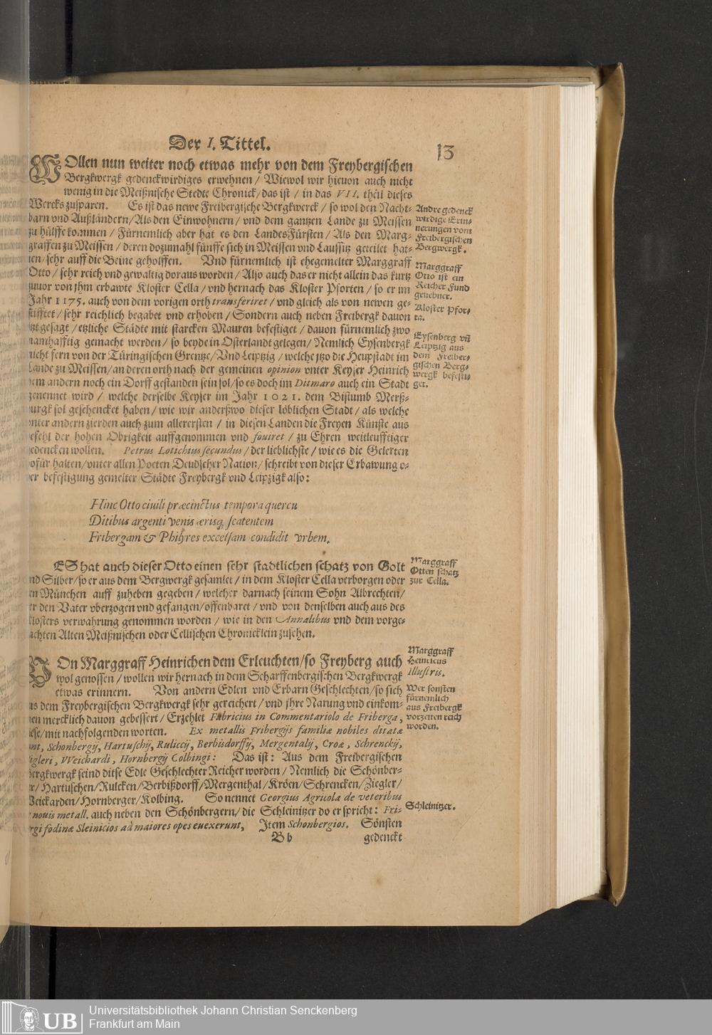 Meißnische Land vnd Berg-Chronica, : Jn welcher ein vollnstendige description des Landes, so zwischen der Elbe, Sala vnd Südödischen Behmischen gebirgen gelegen, So wol der dorinnen begriffenen auch anderer Bergwercken, sampt zugehörigen Metall vn[d] Metallar beschreibungen. : Mit einuorleibten fürnehmen Sächsischen, Düringischen vnd Meißninschen Historien. : Auch nicht wenig Tafeln, Wapen vnd Antiquiteten, derer etliche in Kupffer gestochen. / Gestellet durch Petrum Albinum M. Churf. Sech. Secr. ..
