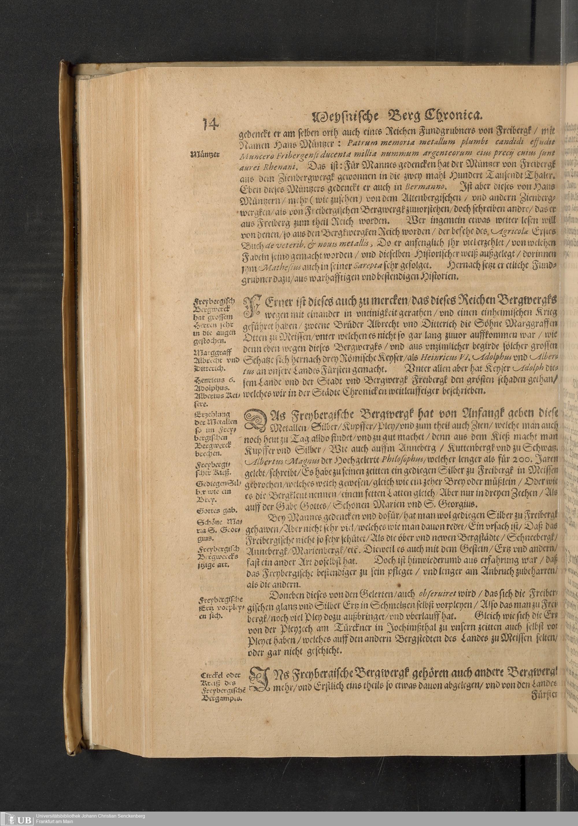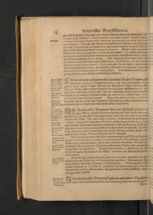 Meißnische Land vnd Berg-Chronica, : Jn welcher ein vollnstendige description des Landes, so zwischen der Elbe, Sala vnd Südödischen Behmischen gebirgen gelegen, So wol der dorinnen begriffenen auch anderer Bergwercken, sampt zugehörigen Metall vn[d] Metallar beschreibungen. : Mit einuorleibten fürnehmen Sächsischen, Düringischen vnd Meißninschen Historien. : Auch nicht wenig Tafeln, Wapen vnd Antiquiteten, derer etliche in Kupffer gestochen. / Gestellet durch Petrum Albinum M. Churf. Sech. Secr. ..