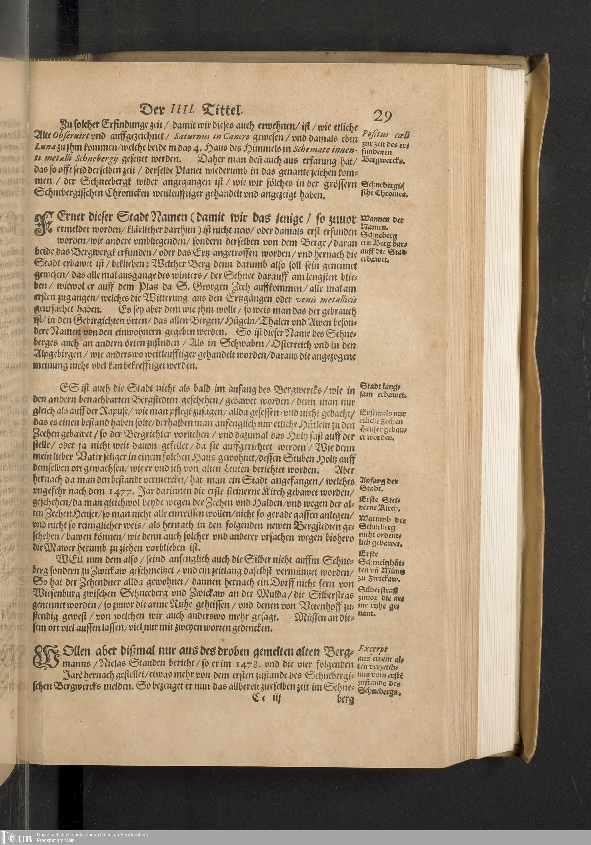 Meißnische Land vnd Berg-Chronica, : Jn welcher ein vollnstendige description des Landes, so zwischen der Elbe, Sala vnd Südödischen Behmischen gebirgen gelegen, So wol der dorinnen begriffenen auch anderer Bergwercken, sampt zugehörigen Metall vn[d] Metallar beschreibungen. : Mit einuorleibten fürnehmen Sächsischen, Düringischen vnd Meißninschen Historien. : Auch nicht wenig Tafeln, Wapen vnd Antiquiteten, derer etliche in Kupffer gestochen. / Gestellet durch Petrum Albinum M. Churf. Sech. Secr. ..