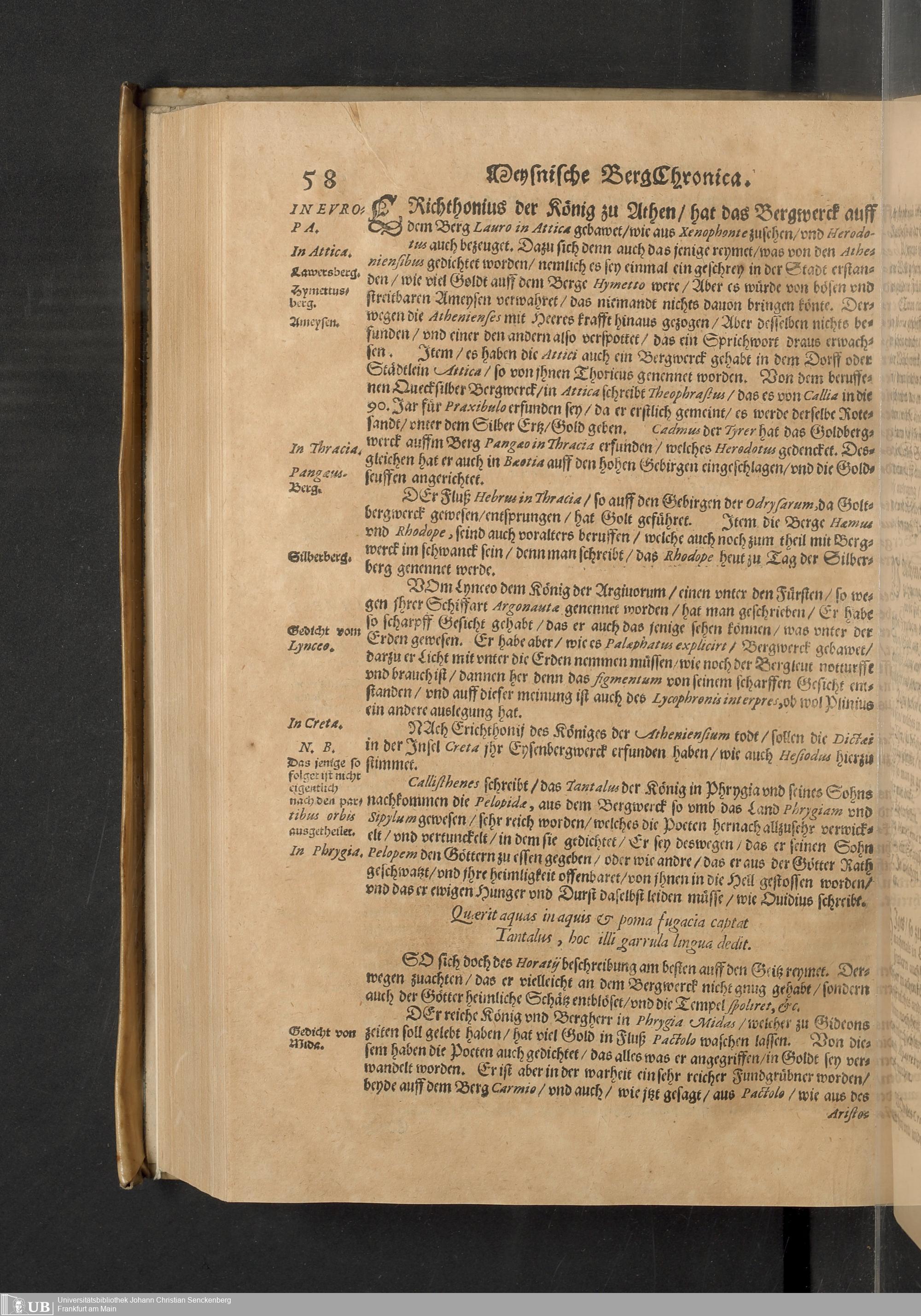 Meißnische Land vnd Berg-Chronica, : Jn welcher ein vollnstendige description des Landes, so zwischen der Elbe, Sala vnd Südödischen Behmischen gebirgen gelegen, So wol der dorinnen begriffenen auch anderer Bergwercken, sampt zugehörigen Metall vn[d] Metallar beschreibungen. : Mit einuorleibten fürnehmen Sächsischen, Düringischen vnd Meißninschen Historien. : Auch nicht wenig Tafeln, Wapen vnd Antiquiteten, derer etliche in Kupffer gestochen. / Gestellet durch Petrum Albinum M. Churf. Sech. Secr. ..