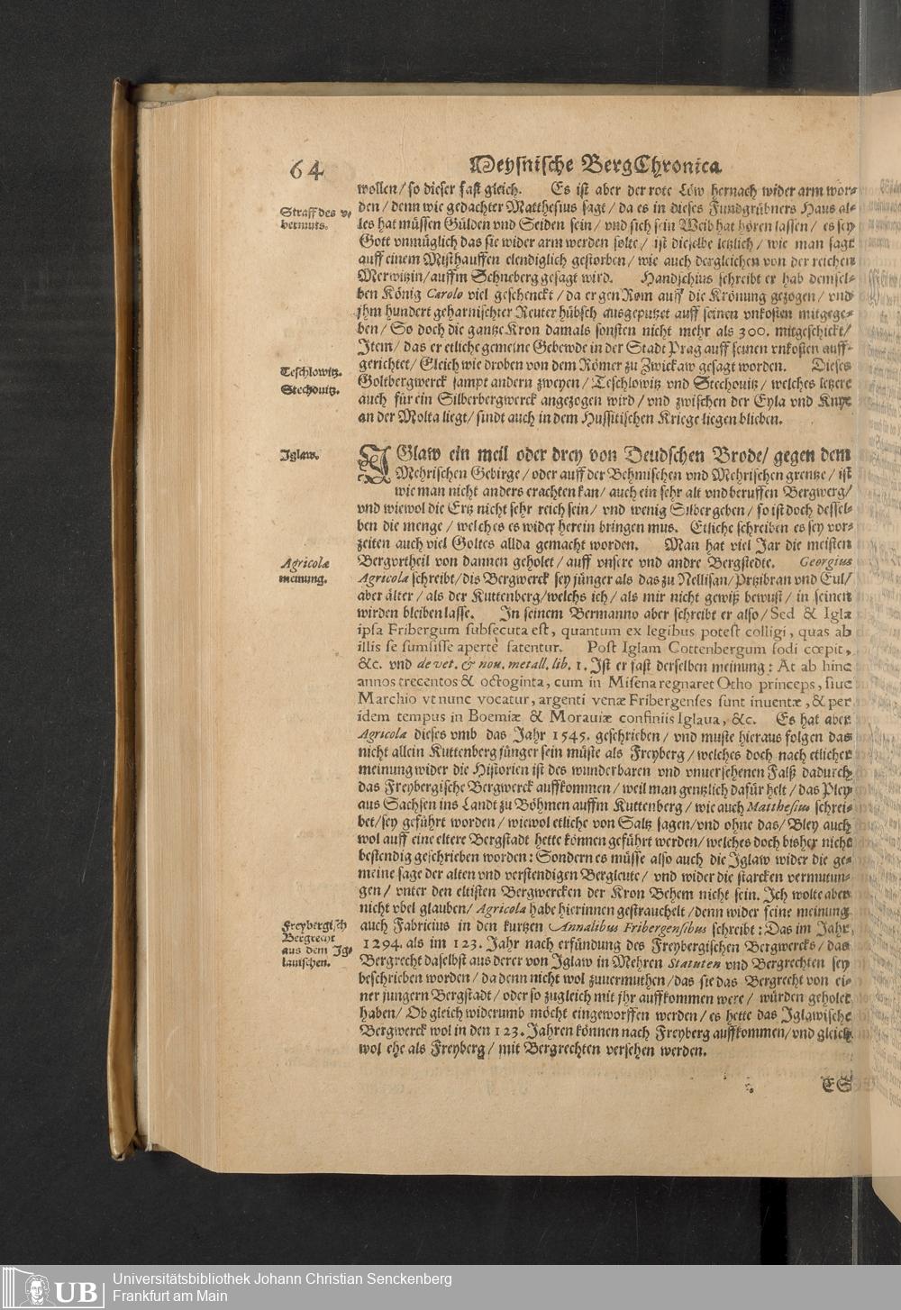 Meißnische Land vnd Berg-Chronica, : Jn welcher ein vollnstendige description des Landes, so zwischen der Elbe, Sala vnd Südödischen Behmischen gebirgen gelegen, So wol der dorinnen begriffenen auch anderer Bergwercken, sampt zugehörigen Metall vn[d] Metallar beschreibungen. : Mit einuorleibten fürnehmen Sächsischen, Düringischen vnd Meißninschen Historien. : Auch nicht wenig Tafeln, Wapen vnd Antiquiteten, derer etliche in Kupffer gestochen. / Gestellet durch Petrum Albinum M. Churf. Sech. Secr. ..