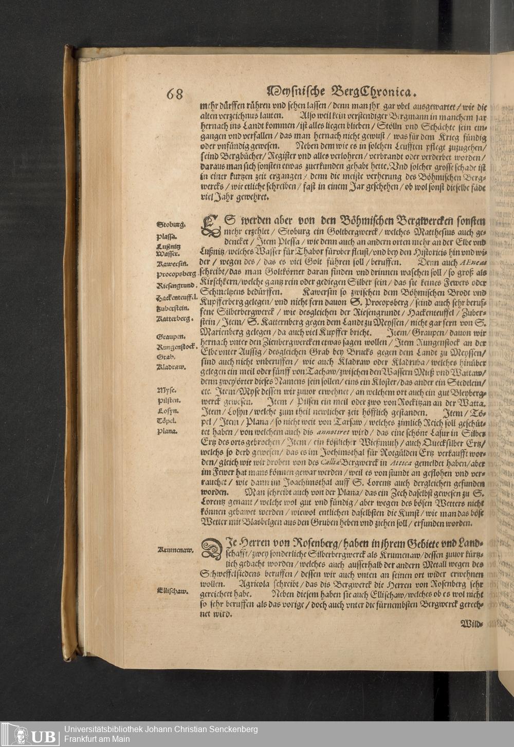 Meißnische Land vnd Berg-Chronica, : Jn welcher ein vollnstendige description des Landes, so zwischen der Elbe, Sala vnd Südödischen Behmischen gebirgen gelegen, So wol der dorinnen begriffenen auch anderer Bergwercken, sampt zugehörigen Metall vn[d] Metallar beschreibungen. : Mit einuorleibten fürnehmen Sächsischen, Düringischen vnd Meißninschen Historien. : Auch nicht wenig Tafeln, Wapen vnd Antiquiteten, derer etliche in Kupffer gestochen. / Gestellet durch Petrum Albinum M. Churf. Sech. Secr. ..