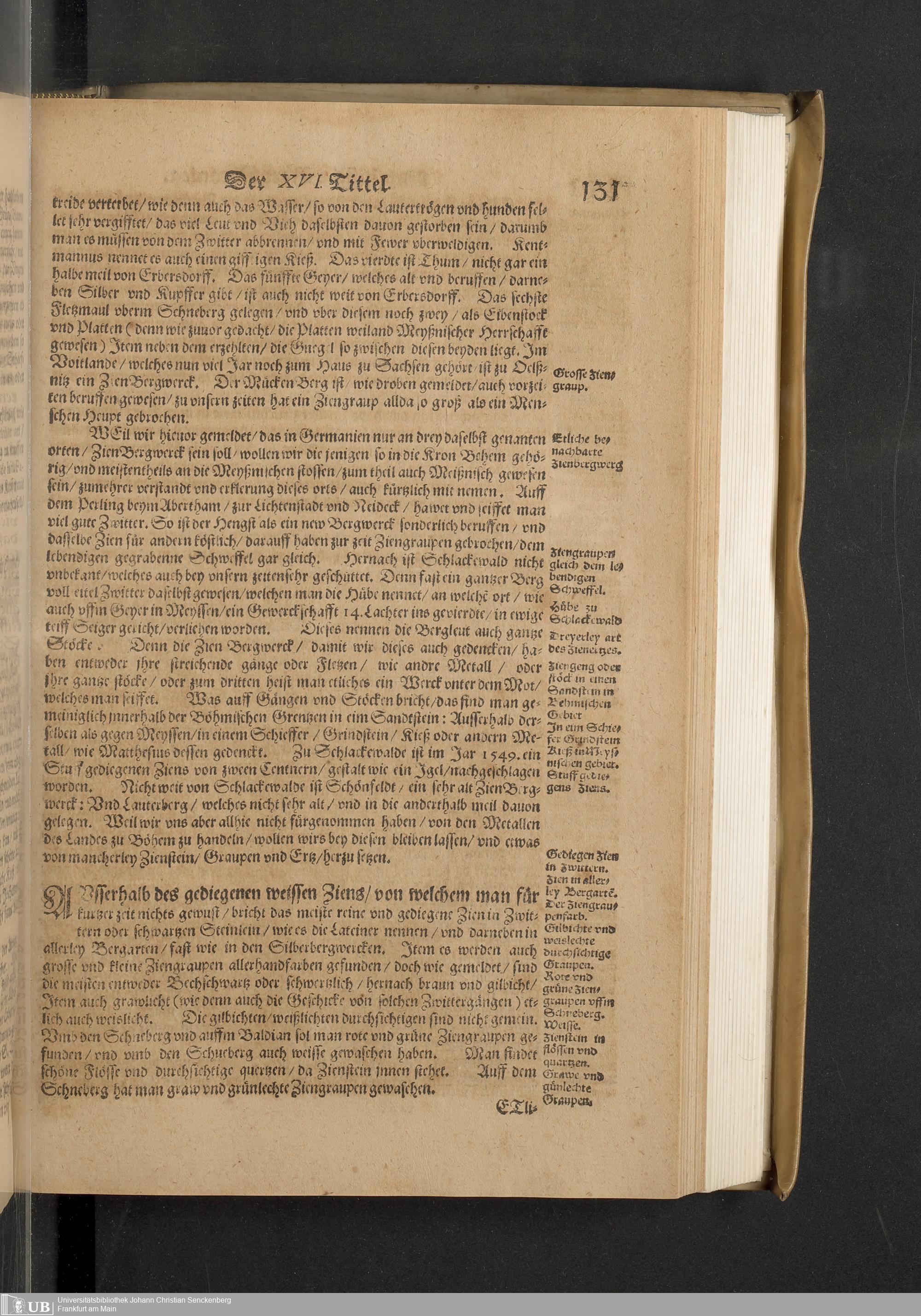 Meißnische Land vnd Berg-Chronica, : Jn welcher ein vollnstendige description des Landes, so zwischen der Elbe, Sala vnd Südödischen Behmischen gebirgen gelegen, So wol der dorinnen begriffenen auch anderer Bergwercken, sampt zugehörigen Metall vn[d] Metallar beschreibungen. : Mit einuorleibten fürnehmen Sächsischen, Düringischen vnd Meißninschen Historien. : Auch nicht wenig Tafeln, Wapen vnd Antiquiteten, derer etliche in Kupffer gestochen. / Gestellet durch Petrum Albinum M. Churf. Sech. Secr. ..