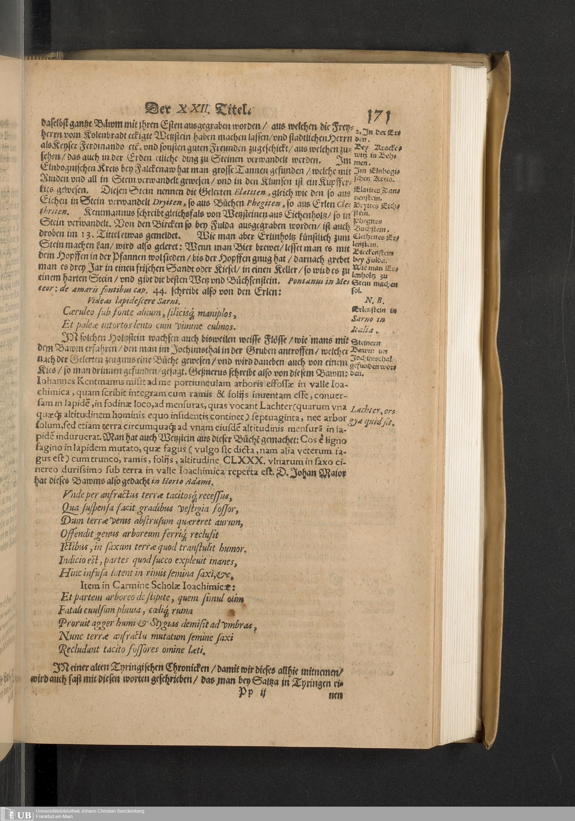 Meißnische Land vnd Berg-Chronica, : Jn welcher ein vollnstendige description des Landes, so zwischen der Elbe, Sala vnd Südödischen Behmischen gebirgen gelegen, So wol der dorinnen begriffenen auch anderer Bergwercken, sampt zugehörigen Metall vn[d] Metallar beschreibungen. : Mit einuorleibten fürnehmen Sächsischen, Düringischen vnd Meißninschen Historien. : Auch nicht wenig Tafeln, Wapen vnd Antiquiteten, derer etliche in Kupffer gestochen. / Gestellet durch Petrum Albinum M. Churf. Sech. Secr. ..