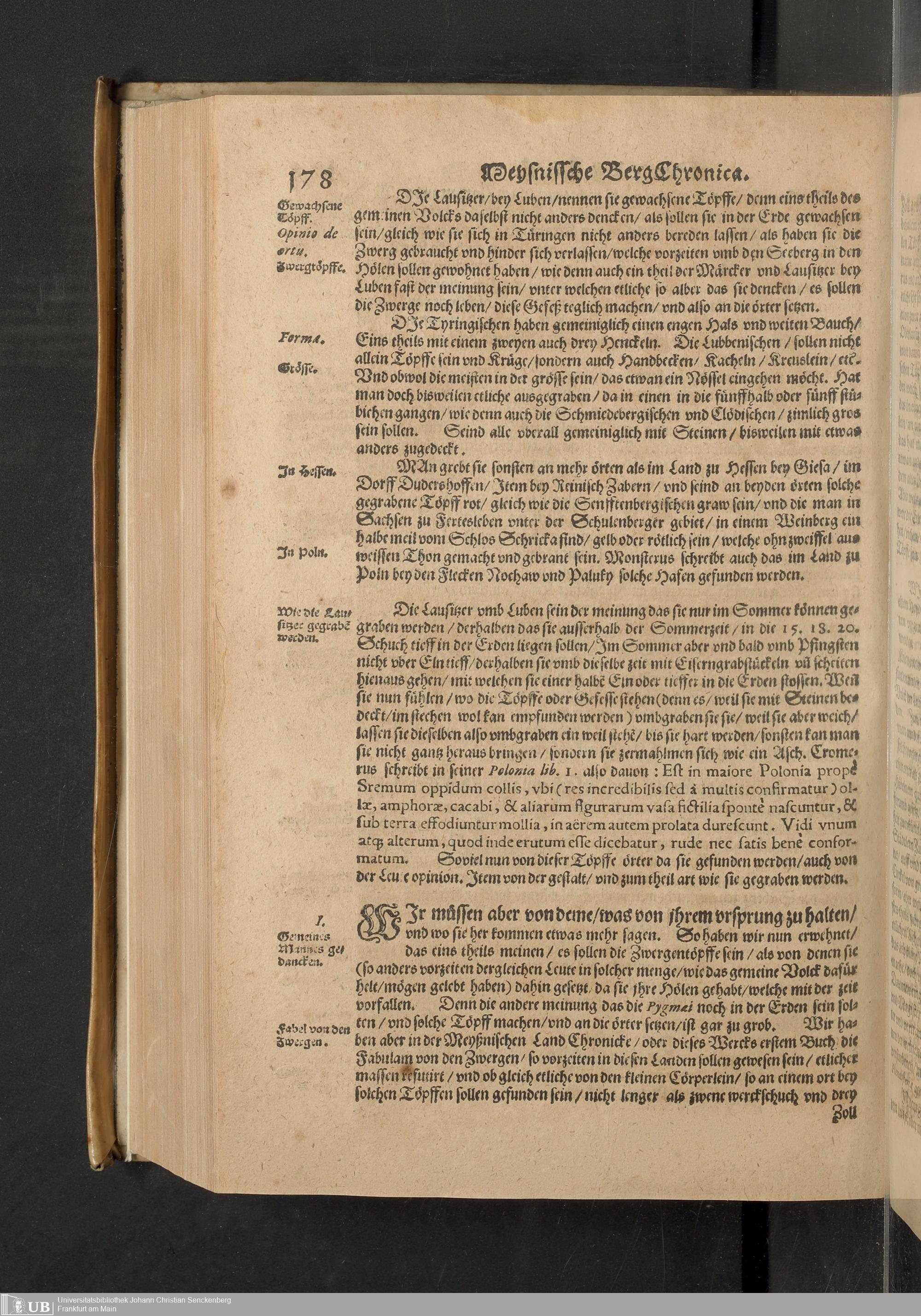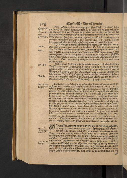 Meißnische Land vnd Berg-Chronica, : Jn welcher ein vollnstendige description des Landes, so zwischen der Elbe, Sala vnd Südödischen Behmischen gebirgen gelegen, So wol der dorinnen begriffenen auch anderer Bergwercken, sampt zugehörigen Metall vn[d] Metallar beschreibungen. : Mit einuorleibten fürnehmen Sächsischen, Düringischen vnd Meißninschen Historien. : Auch nicht wenig Tafeln, Wapen vnd Antiquiteten, derer etliche in Kupffer gestochen. / Gestellet durch Petrum Albinum M. Churf. Sech. Secr. ..