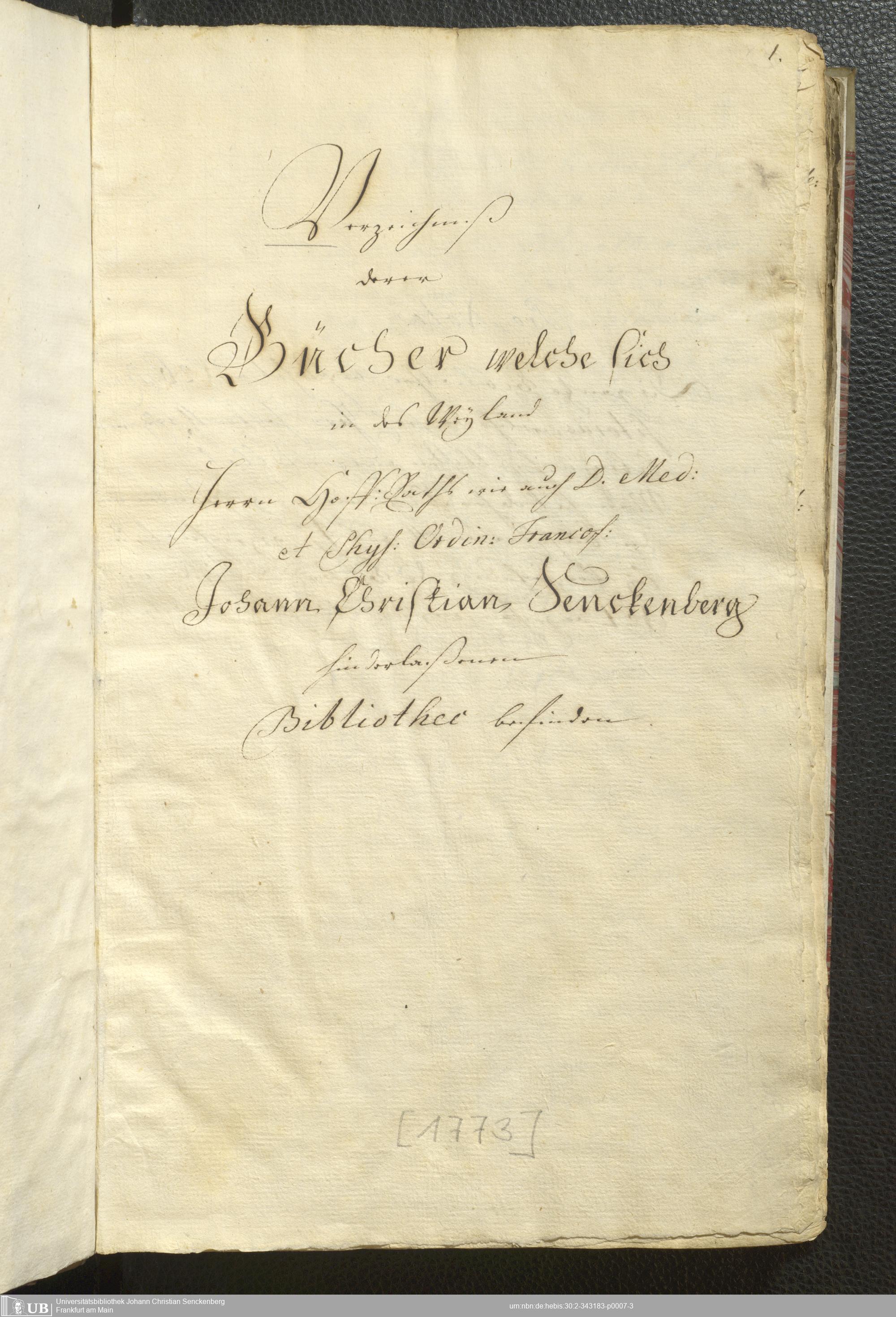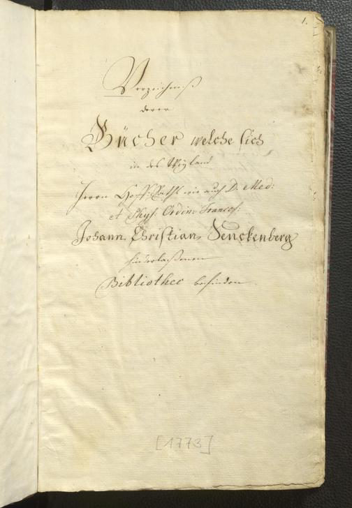 2° A 270.2797 - Verzeichnis derer Bücher welche sich in der weyland Herrn Hoffraths wie auch D. med. et phys. Ordin. Francof. Johann Christian Senckenberg hinderlaßenen Bibliothec befinden