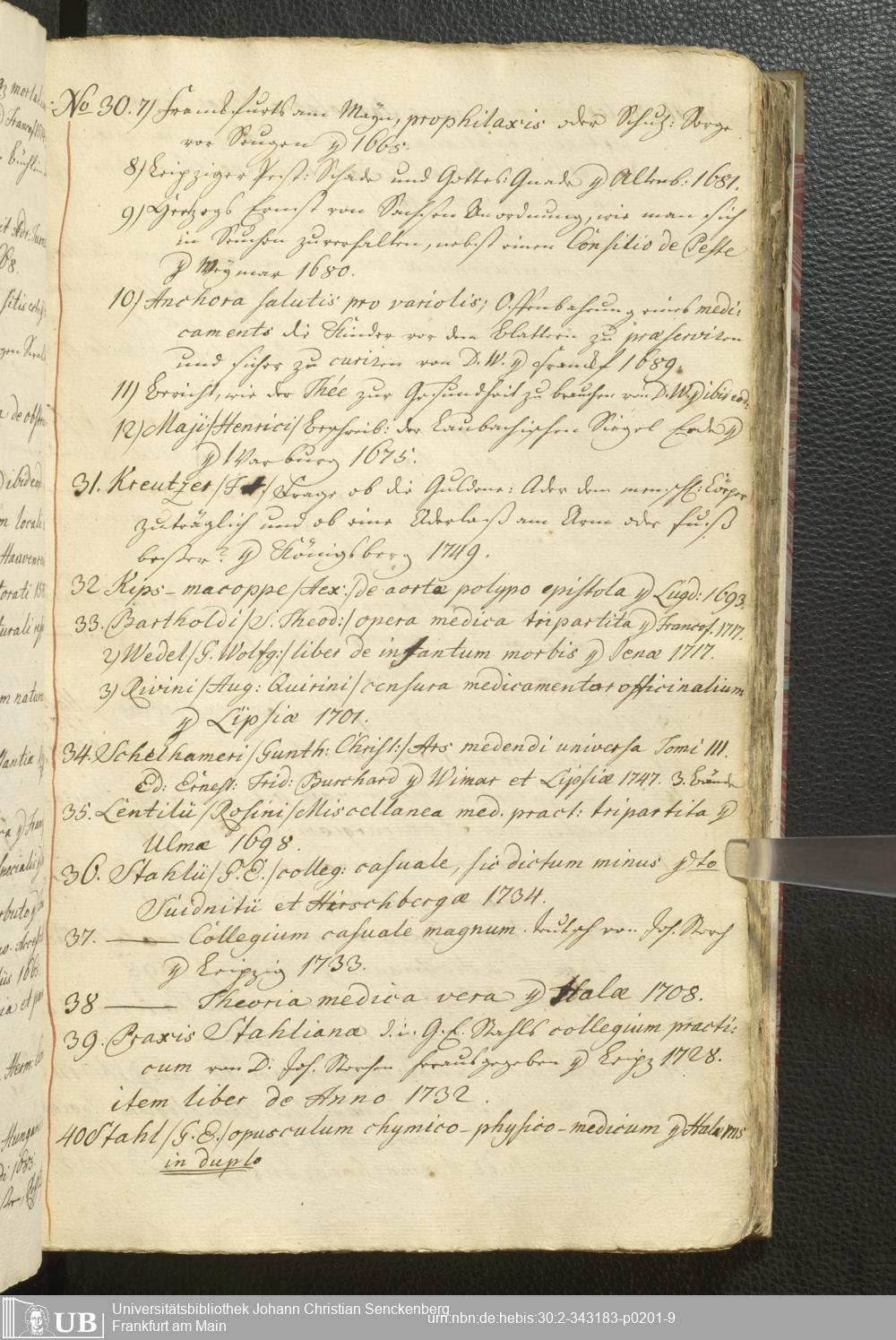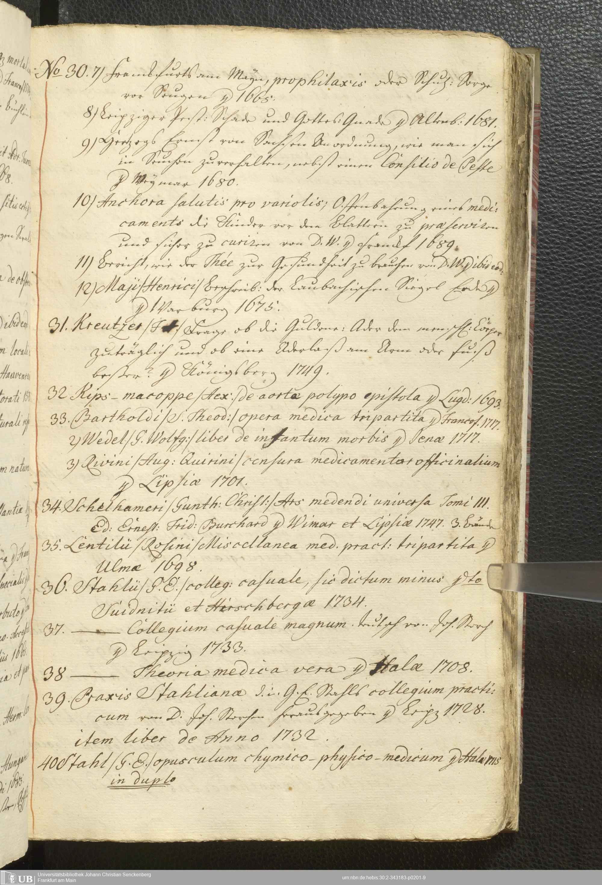 2° A 270.2797 - Verzeichnis derer Bücher welche sich in der weyland Herrn Hoffraths wie auch D. med. et phys. Ordin. Francof. Johann Christian Senckenberg hinderlaßenen Bibliothec befinden