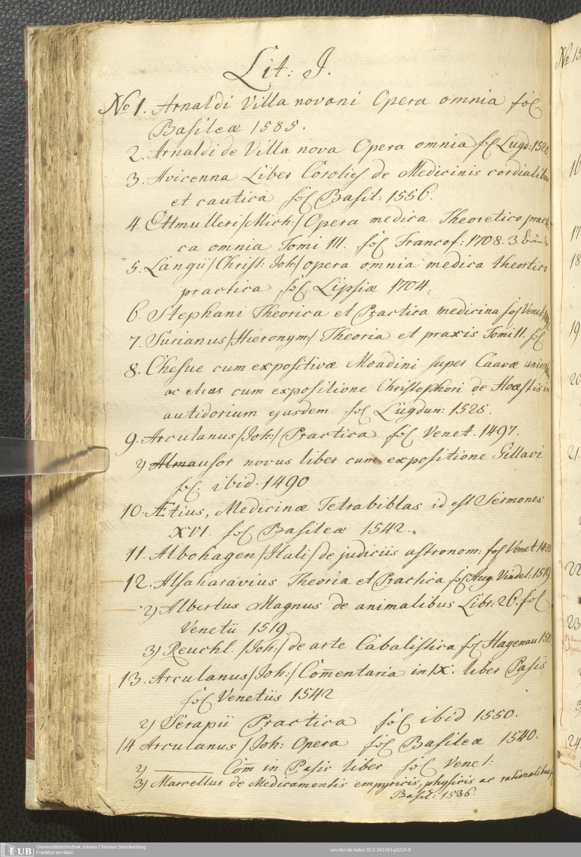 2° A 270.2797 - Verzeichnis derer Bücher welche sich in der weyland Herrn Hoffraths wie auch D. med. et phys. Ordin. Francof. Johann Christian Senckenberg hinderlaßenen Bibliothec befinden