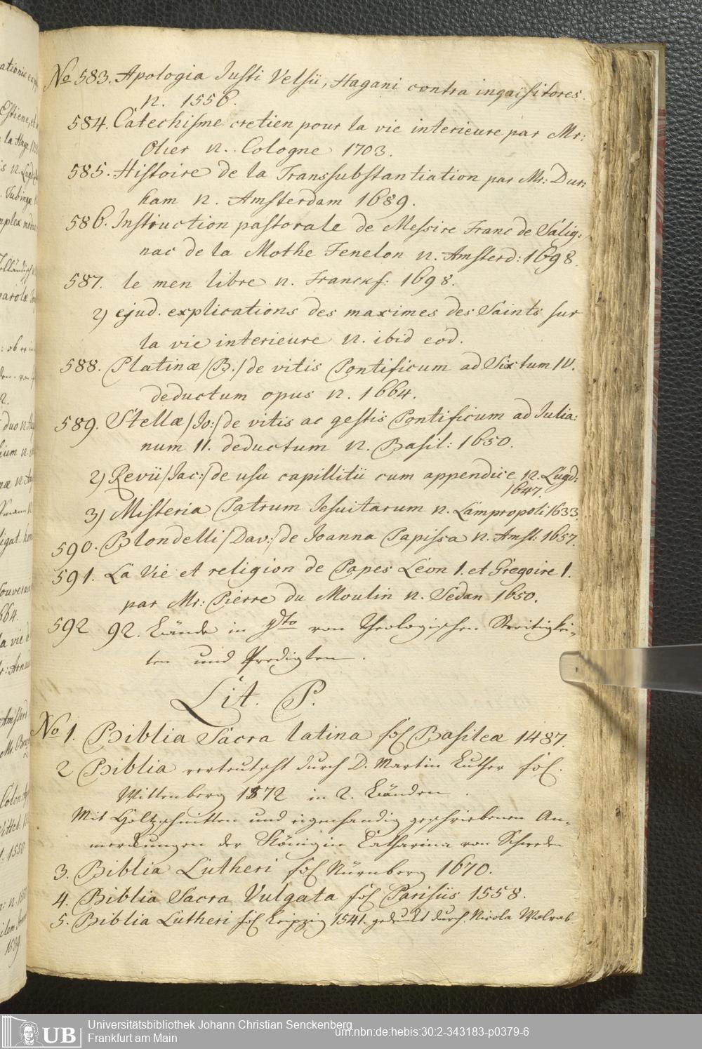2° A 270.2797 - Verzeichnis derer Bücher welche sich in der weyland Herrn Hoffraths wie auch D. med. et phys. Ordin. Francof. Johann Christian Senckenberg hinderlaßenen Bibliothec befinden