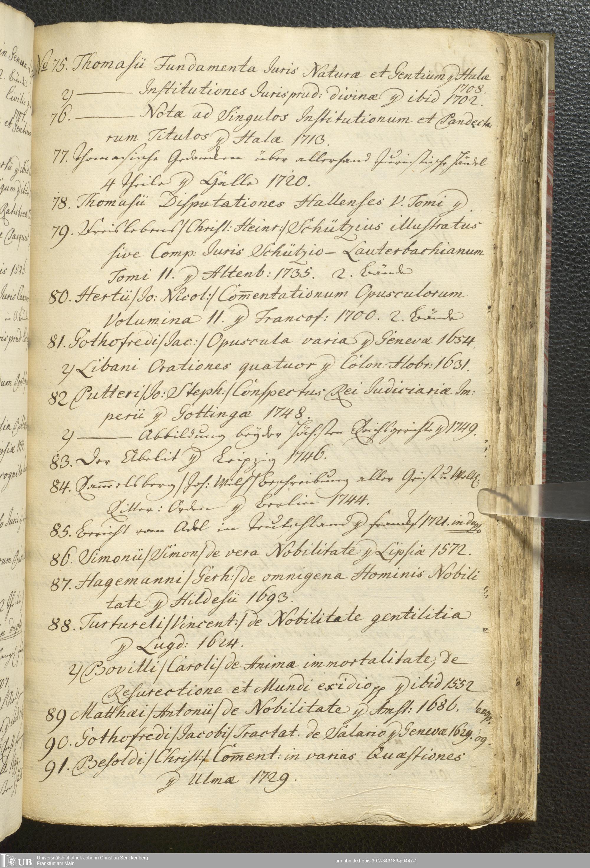 2° A 270.2797 - Verzeichnis derer Bücher welche sich in der weyland Herrn Hoffraths wie auch D. med. et phys. Ordin. Francof. Johann Christian Senckenberg hinderlaßenen Bibliothec befinden