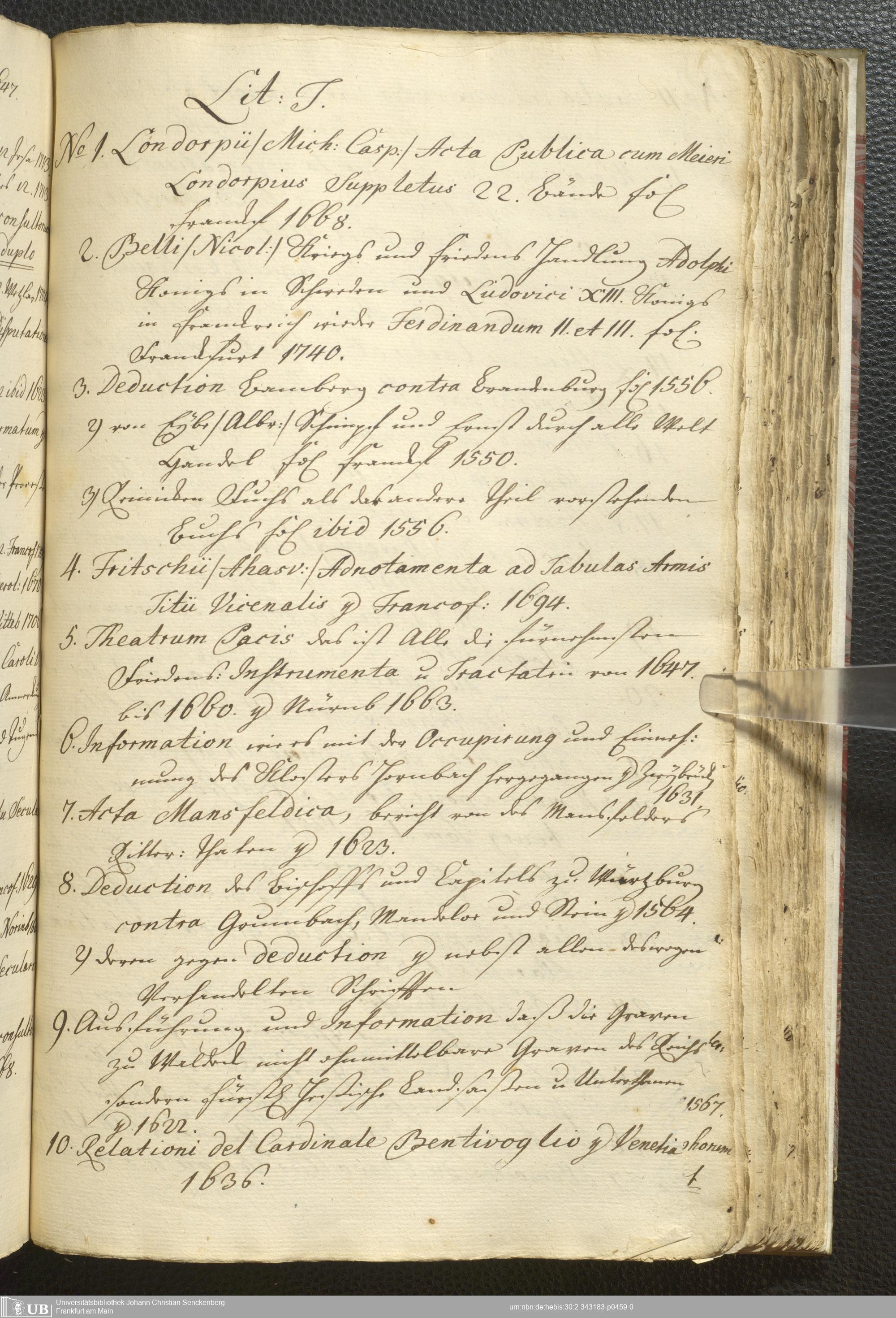 2° A 270.2797 - Verzeichnis derer Bücher welche sich in der weyland Herrn Hoffraths wie auch D. med. et phys. Ordin. Francof. Johann Christian Senckenberg hinderlaßenen Bibliothec befinden