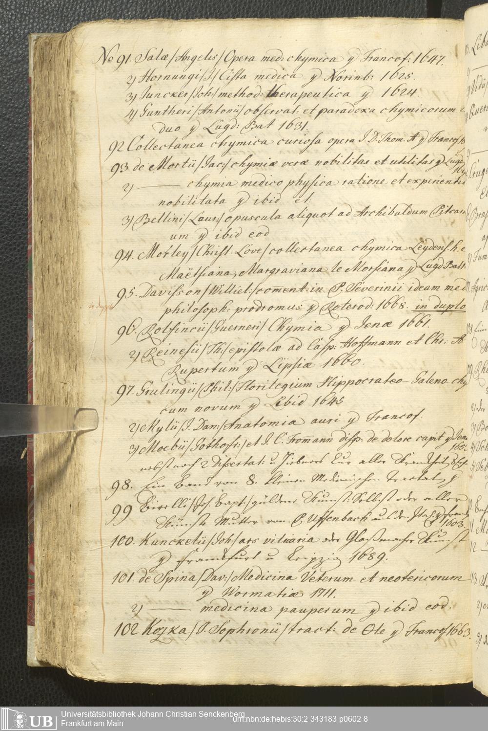 2° A 270.2797 - Verzeichnis derer Bücher welche sich in der weyland Herrn Hoffraths wie auch D. med. et phys. Ordin. Francof. Johann Christian Senckenberg hinderlaßenen Bibliothec befinden