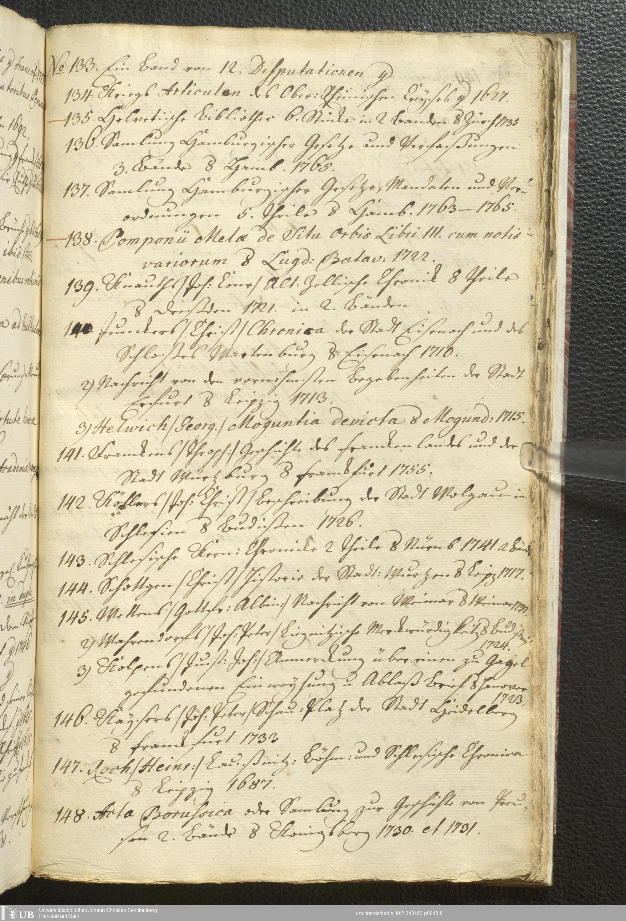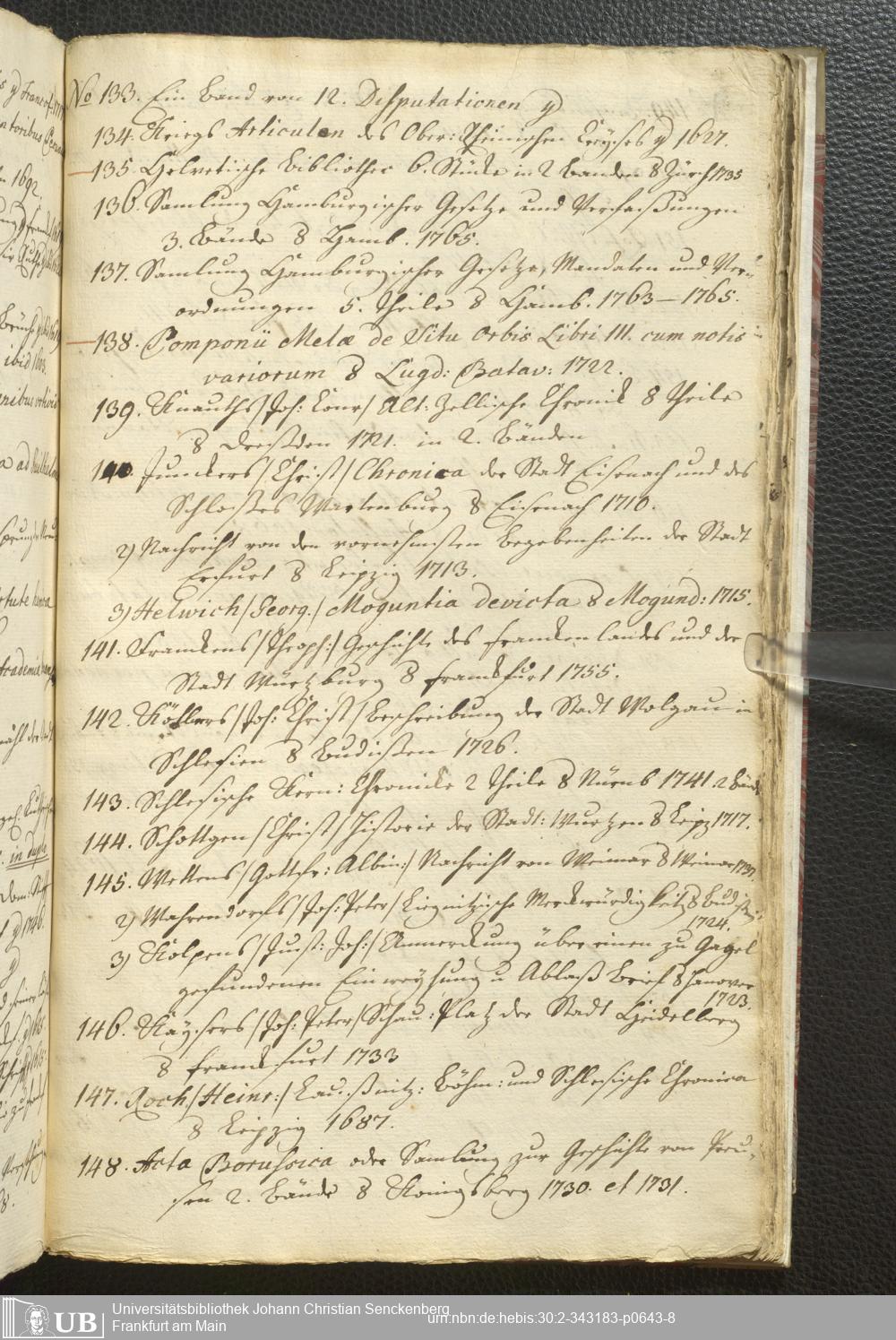 2° A 270.2797 - Verzeichnis derer Bücher welche sich in der weyland Herrn Hoffraths wie auch D. med. et phys. Ordin. Francof. Johann Christian Senckenberg hinderlaßenen Bibliothec befinden