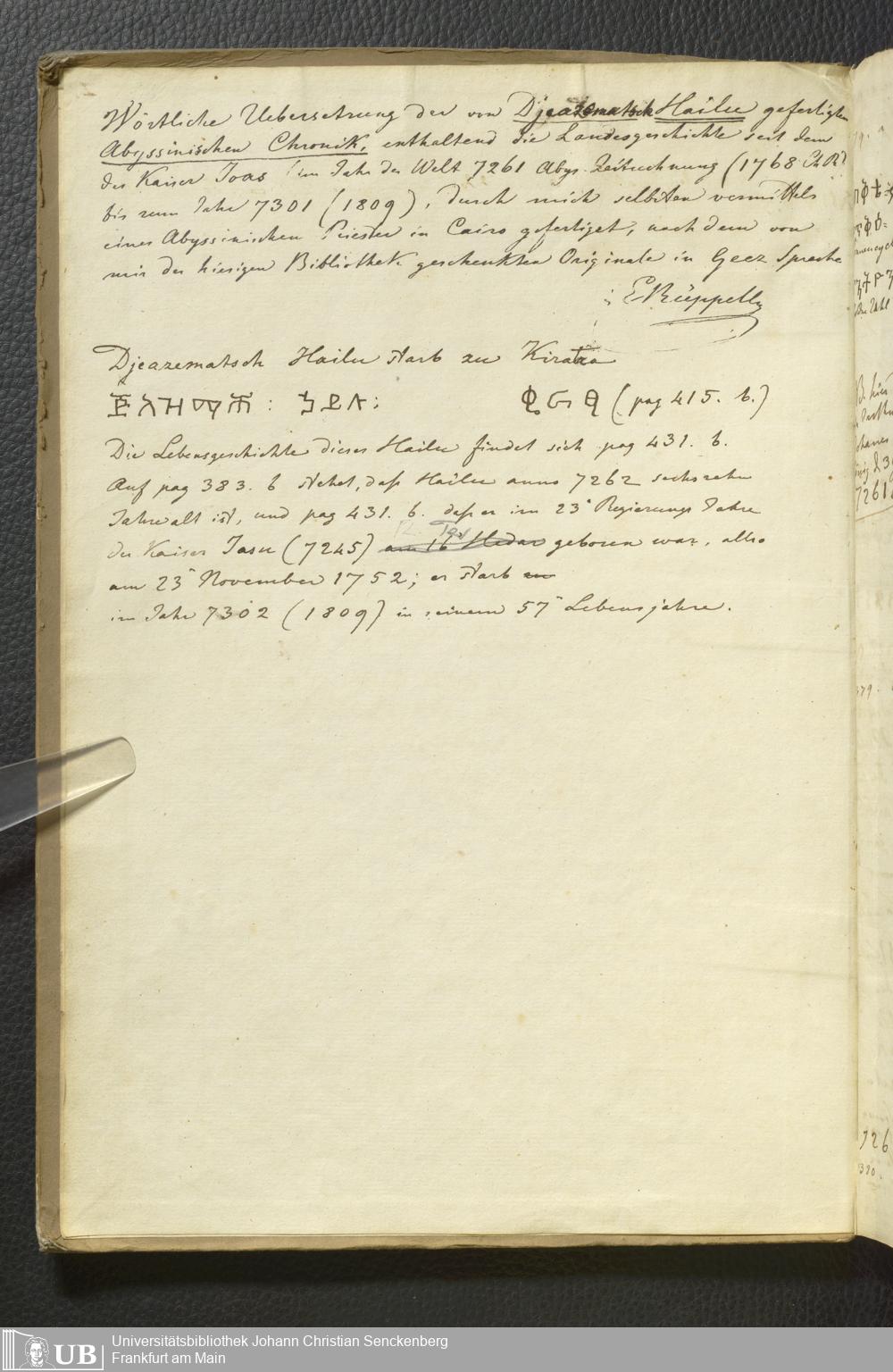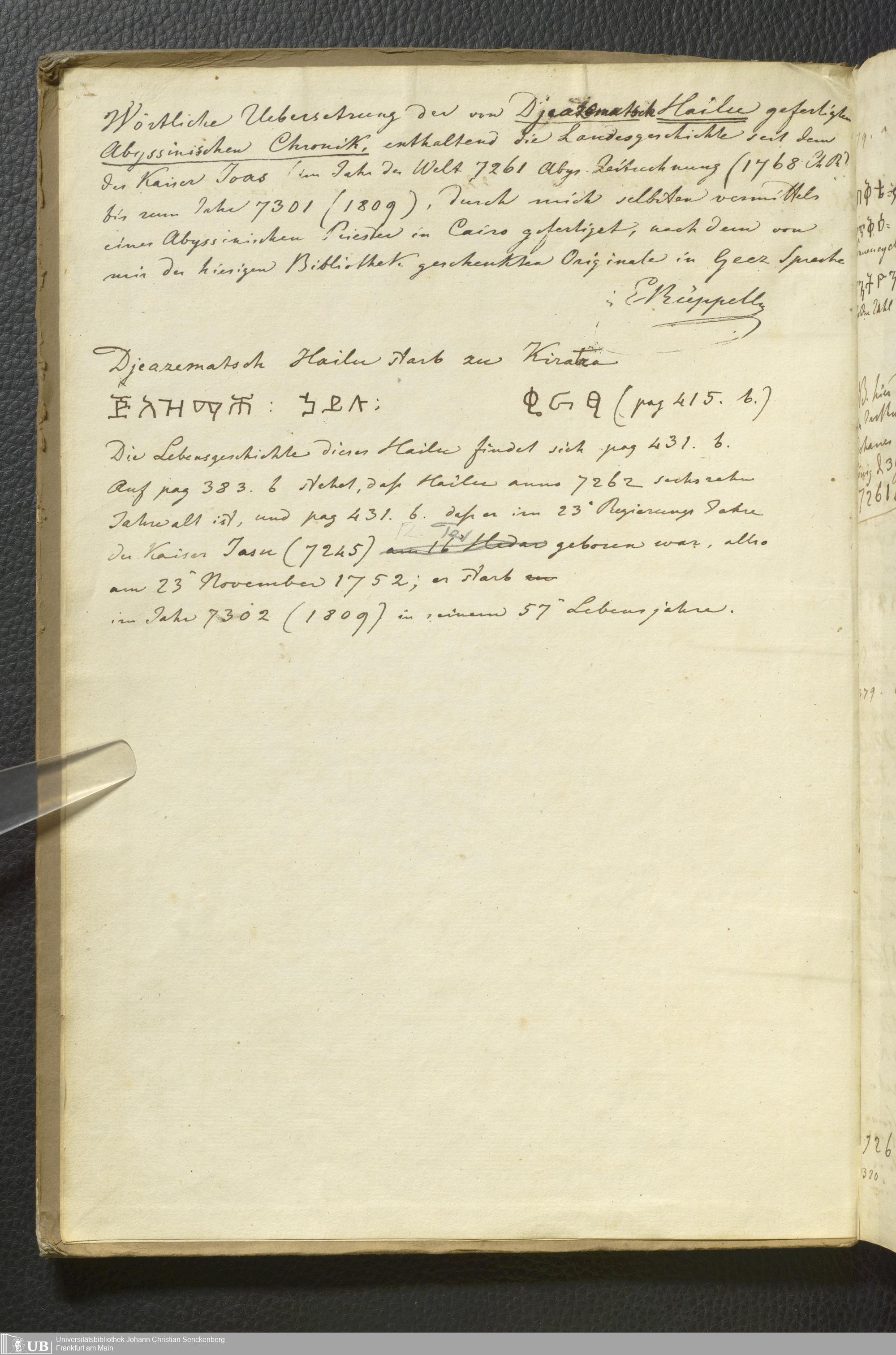 Ms. Ff. E. Rüppell II - Wörtliche Uebersetzung der von Djeazematsch Hailu gefertigten Abyssinischen Chronik, 1768 - 1809