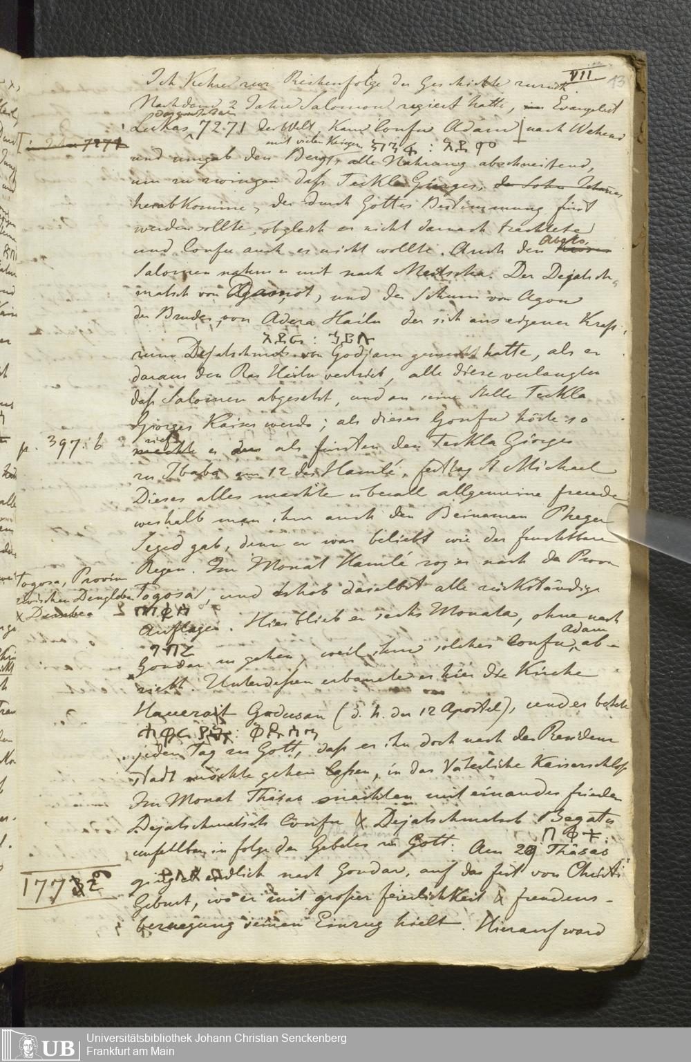 Ms. Ff. E. Rüppell II - Wörtliche Uebersetzung der von Djeazematsch Hailu gefertigten Abyssinischen Chronik, 1768 - 1809