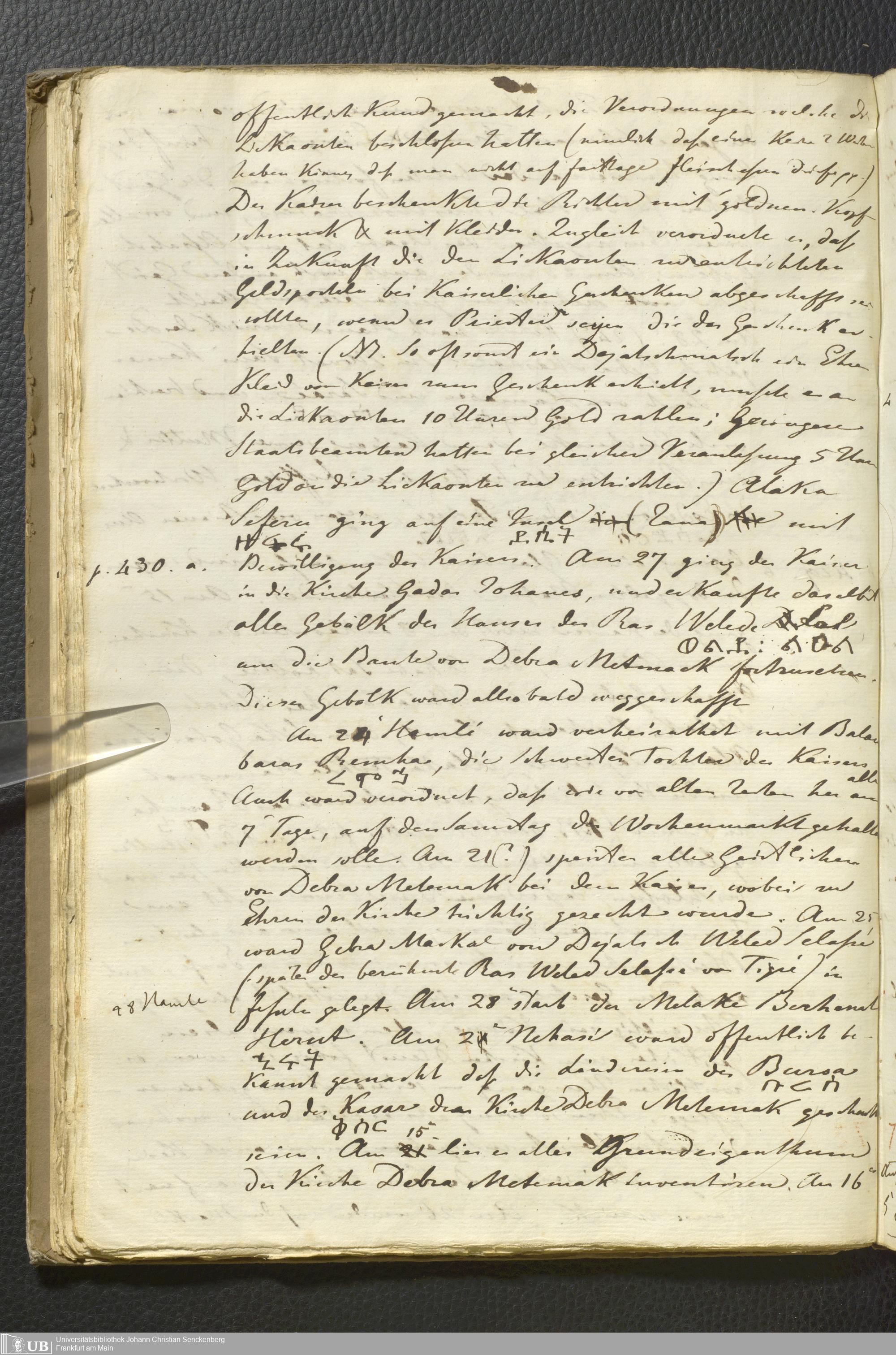 Ms. Ff. E. Rüppell II - Wörtliche Uebersetzung der von Djeazematsch Hailu gefertigten Abyssinischen Chronik, 1768 - 1809