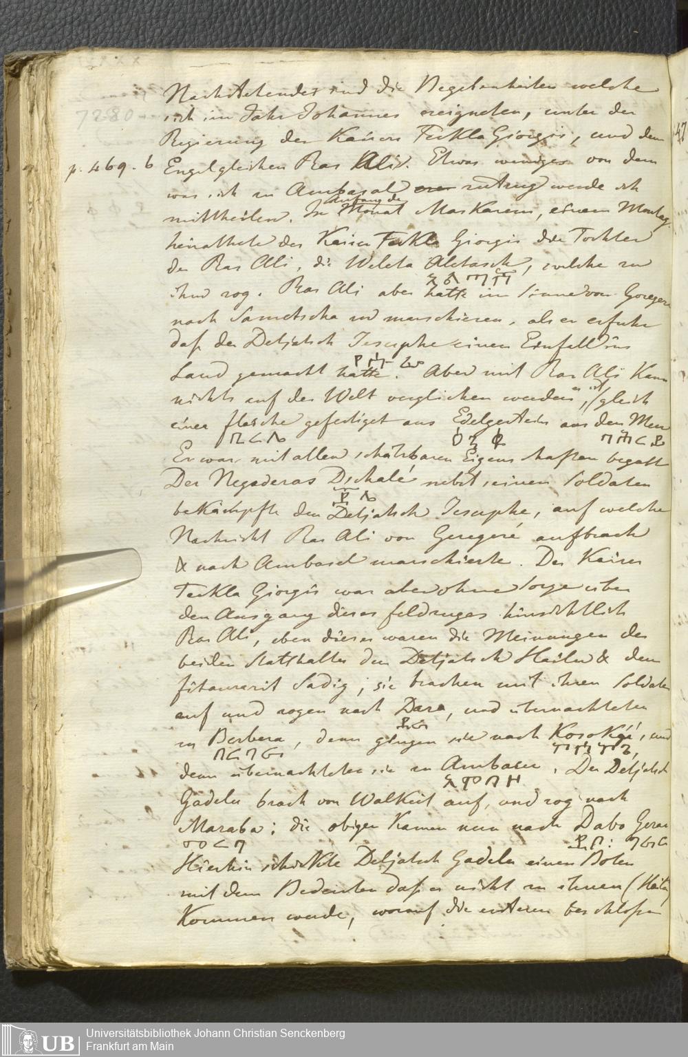 Ms. Ff. E. Rüppell II - Wörtliche Uebersetzung der von Djeazematsch Hailu gefertigten Abyssinischen Chronik, 1768 - 1809