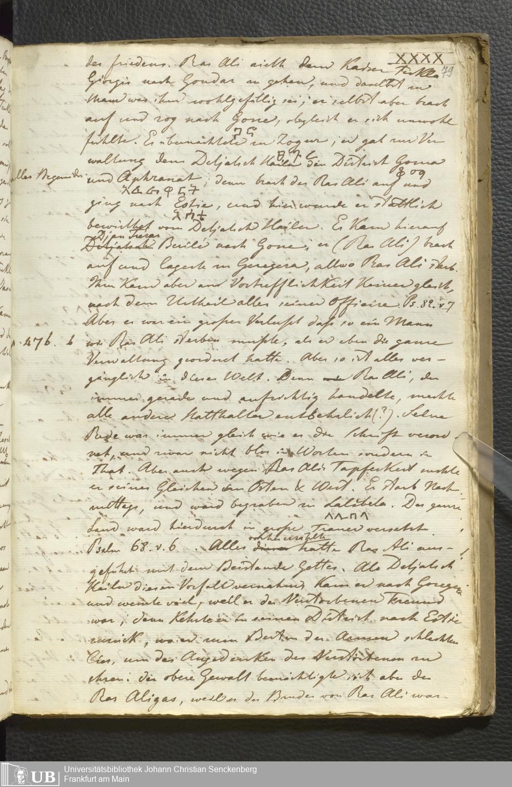 Ms. Ff. E. Rüppell II - Wörtliche Uebersetzung der von Djeazematsch Hailu gefertigten Abyssinischen Chronik, 1768 - 1809