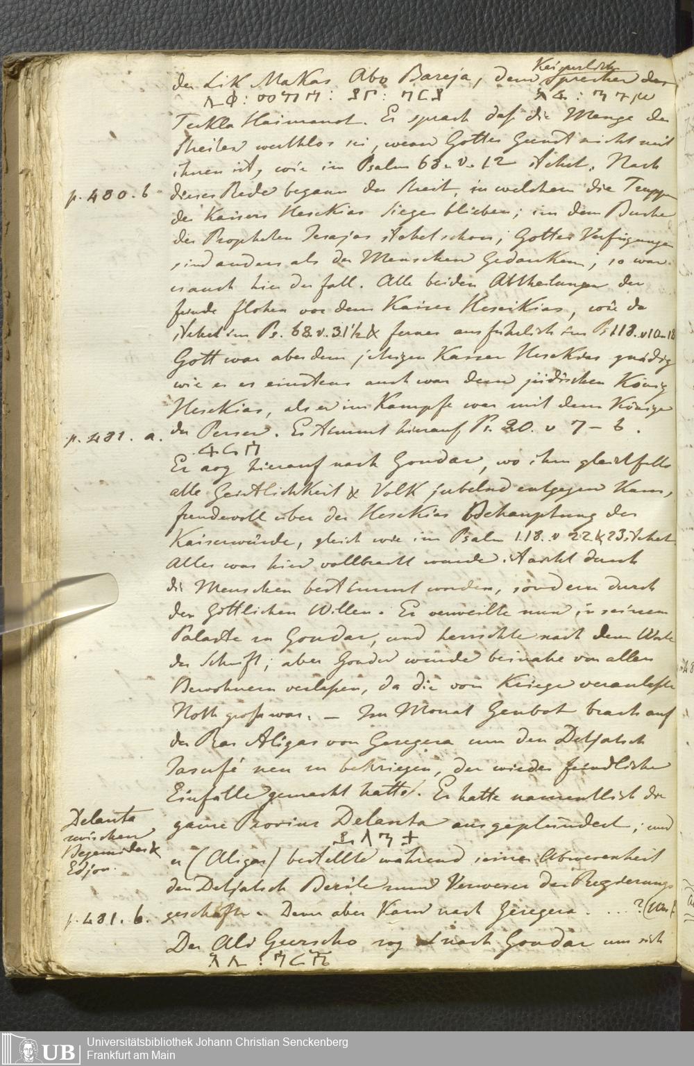 Ms. Ff. E. Rüppell II - Wörtliche Uebersetzung der von Djeazematsch Hailu gefertigten Abyssinischen Chronik, 1768 - 1809