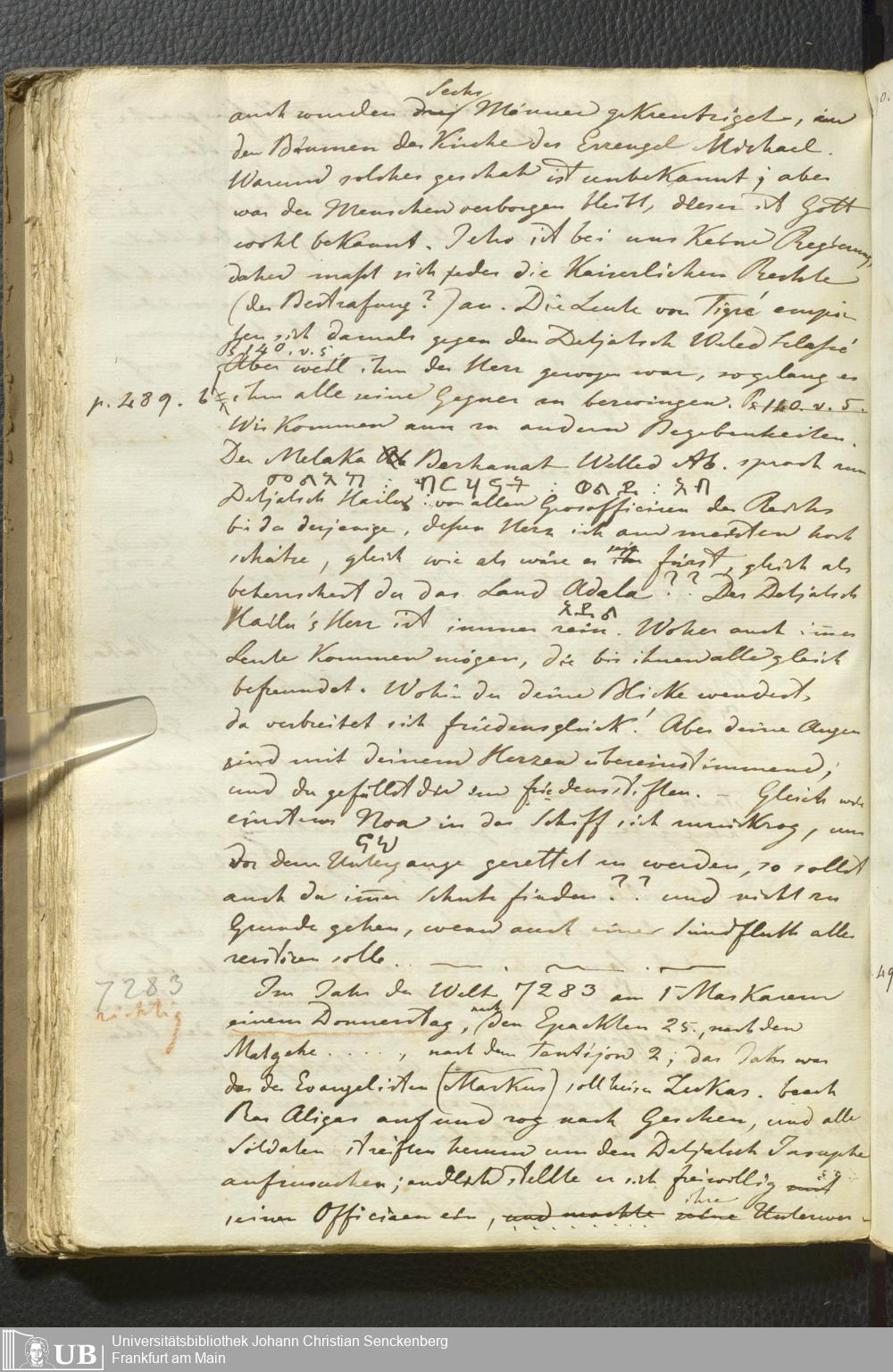 Ms. Ff. E. Rüppell II - Wörtliche Uebersetzung der von Djeazematsch Hailu gefertigten Abyssinischen Chronik, 1768 - 1809
