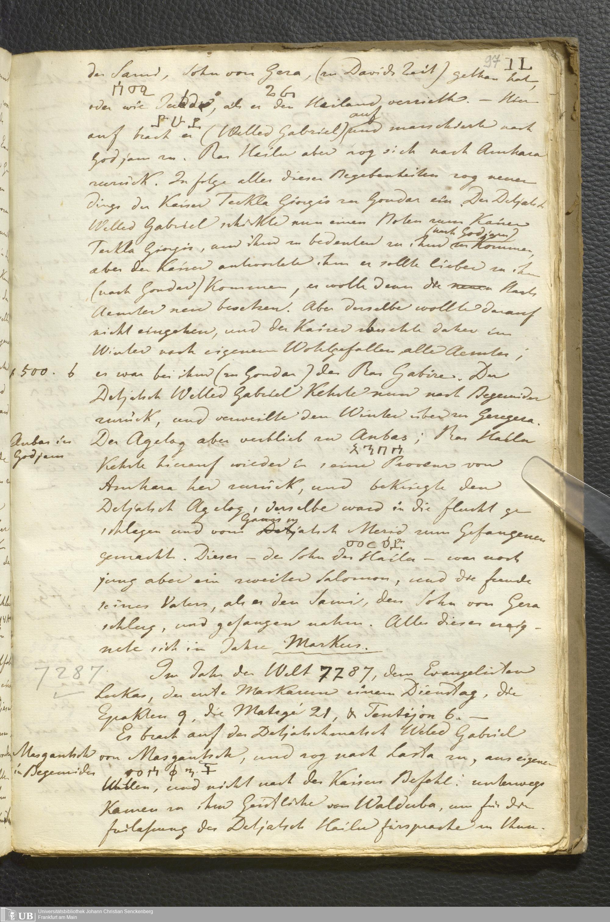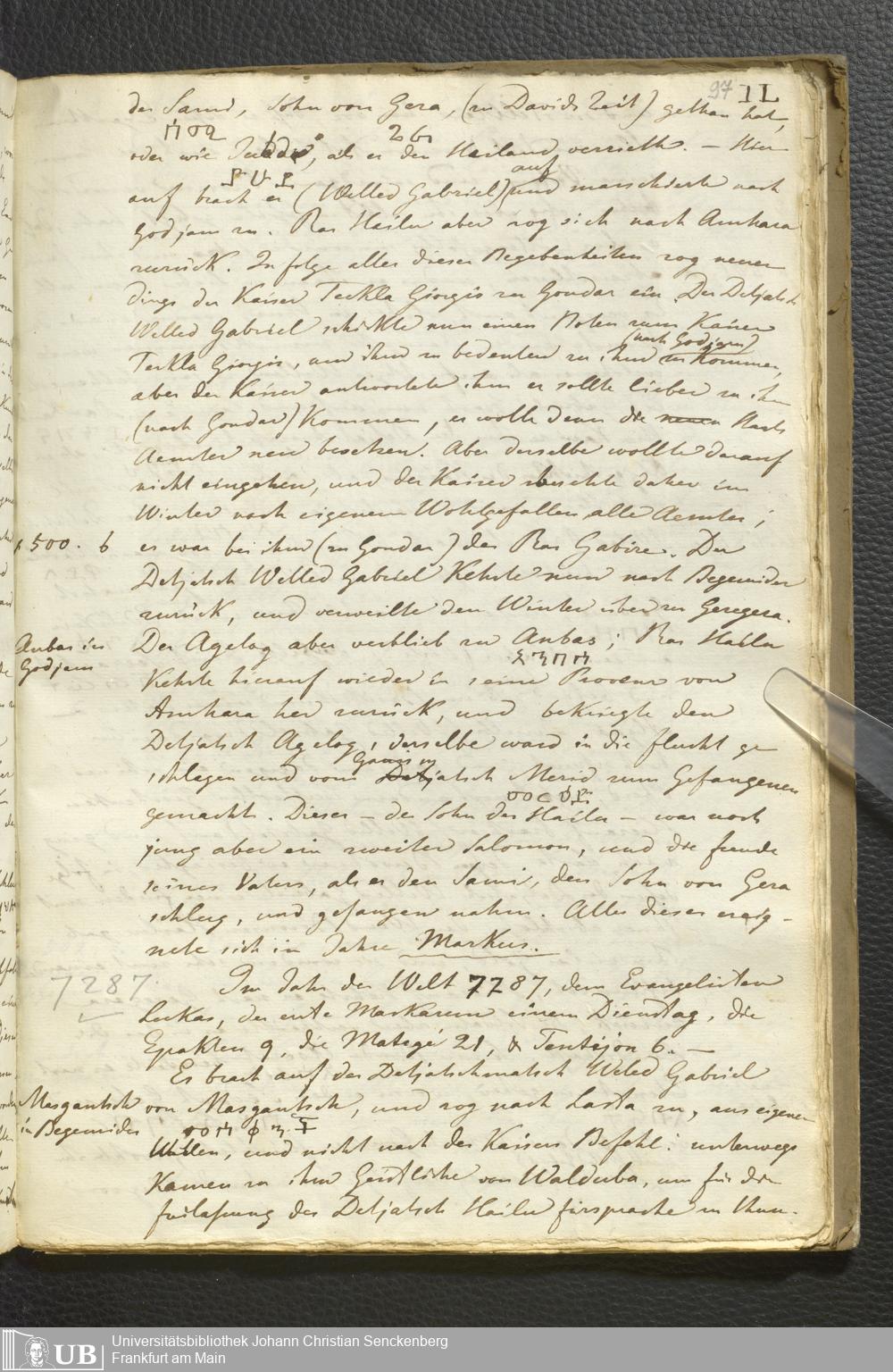 Ms. Ff. E. Rüppell II - Wörtliche Uebersetzung der von Djeazematsch Hailu gefertigten Abyssinischen Chronik, 1768 - 1809