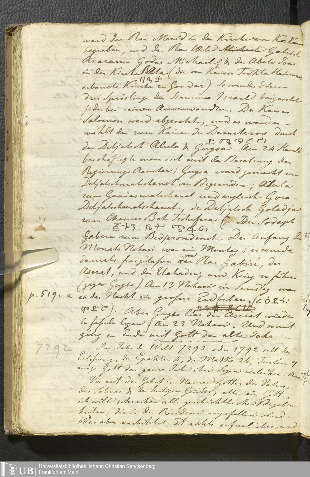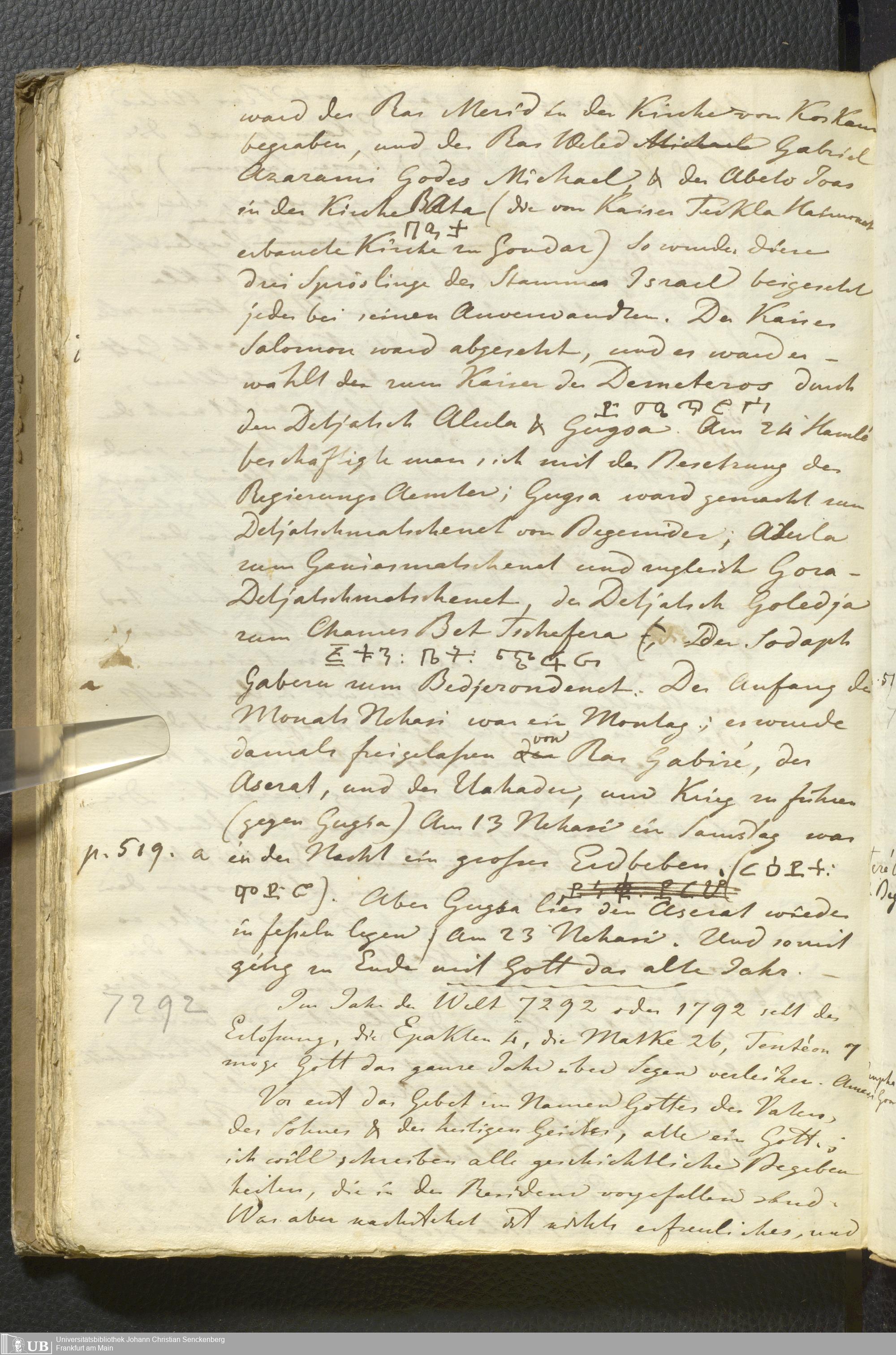 Ms. Ff. E. Rüppell II - Wörtliche Uebersetzung der von Djeazematsch Hailu gefertigten Abyssinischen Chronik, 1768 - 1809