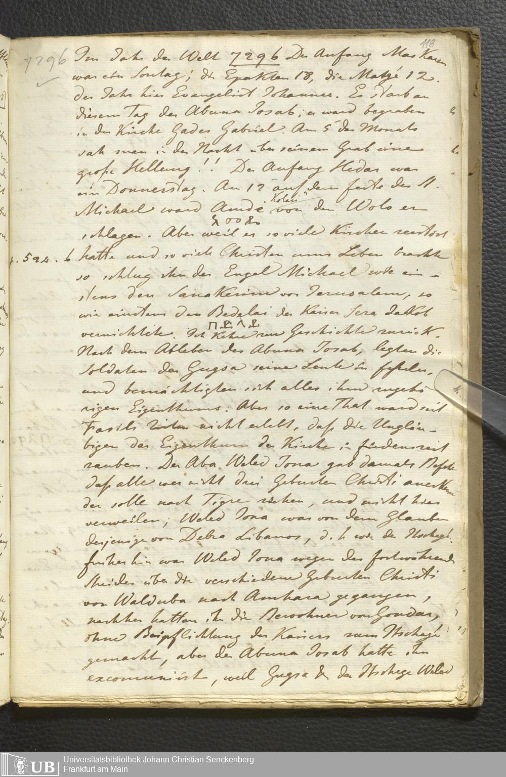Ms. Ff. E. Rüppell II - Wörtliche Uebersetzung der von Djeazematsch Hailu gefertigten Abyssinischen Chronik, 1768 - 1809
