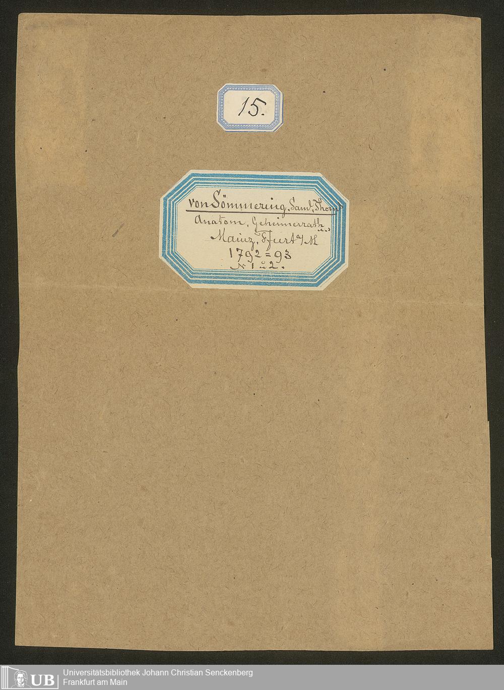 Ms. Ff. S. Th. v. Soemmerring 8 B - Nachlass Samuel Thomas von Soemmerring - 8. Briefwechsel. - B. Briefe von Soemmerring