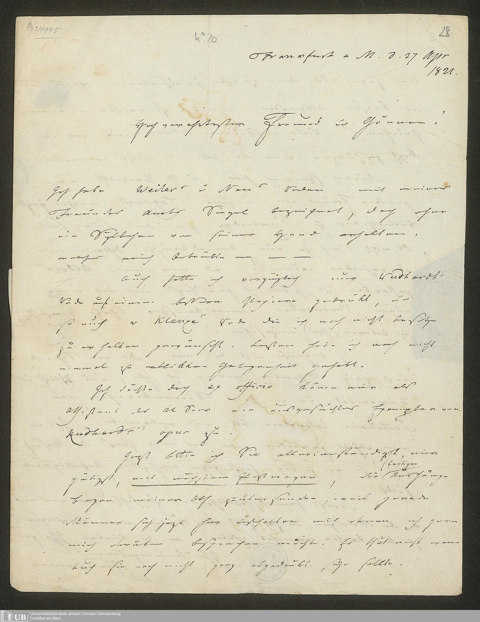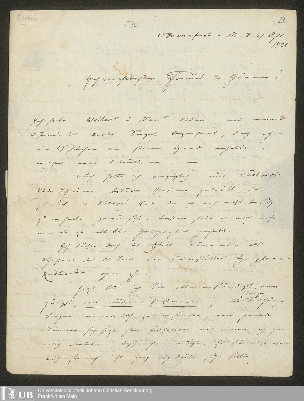 Ms. Ff. S. Th. v. Soemmerring 8 B - Nachlass Samuel Thomas von Soemmerring - 8. Briefwechsel. - B. Briefe von Soemmerring