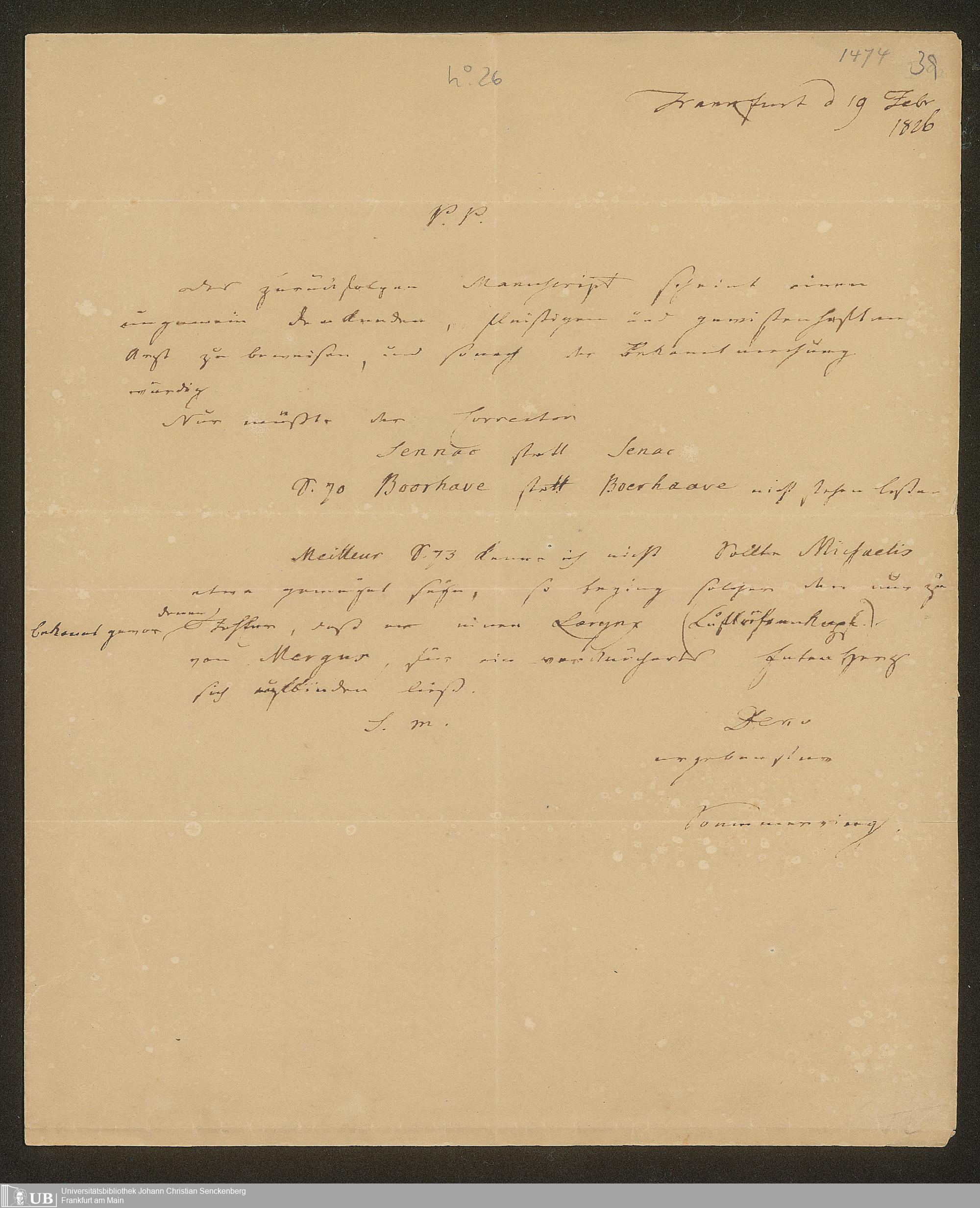 Ms. Ff. S. Th. v. Soemmerring 8 B - Nachlass Samuel Thomas von Soemmerring - 8. Briefwechsel. - B. Briefe von Soemmerring