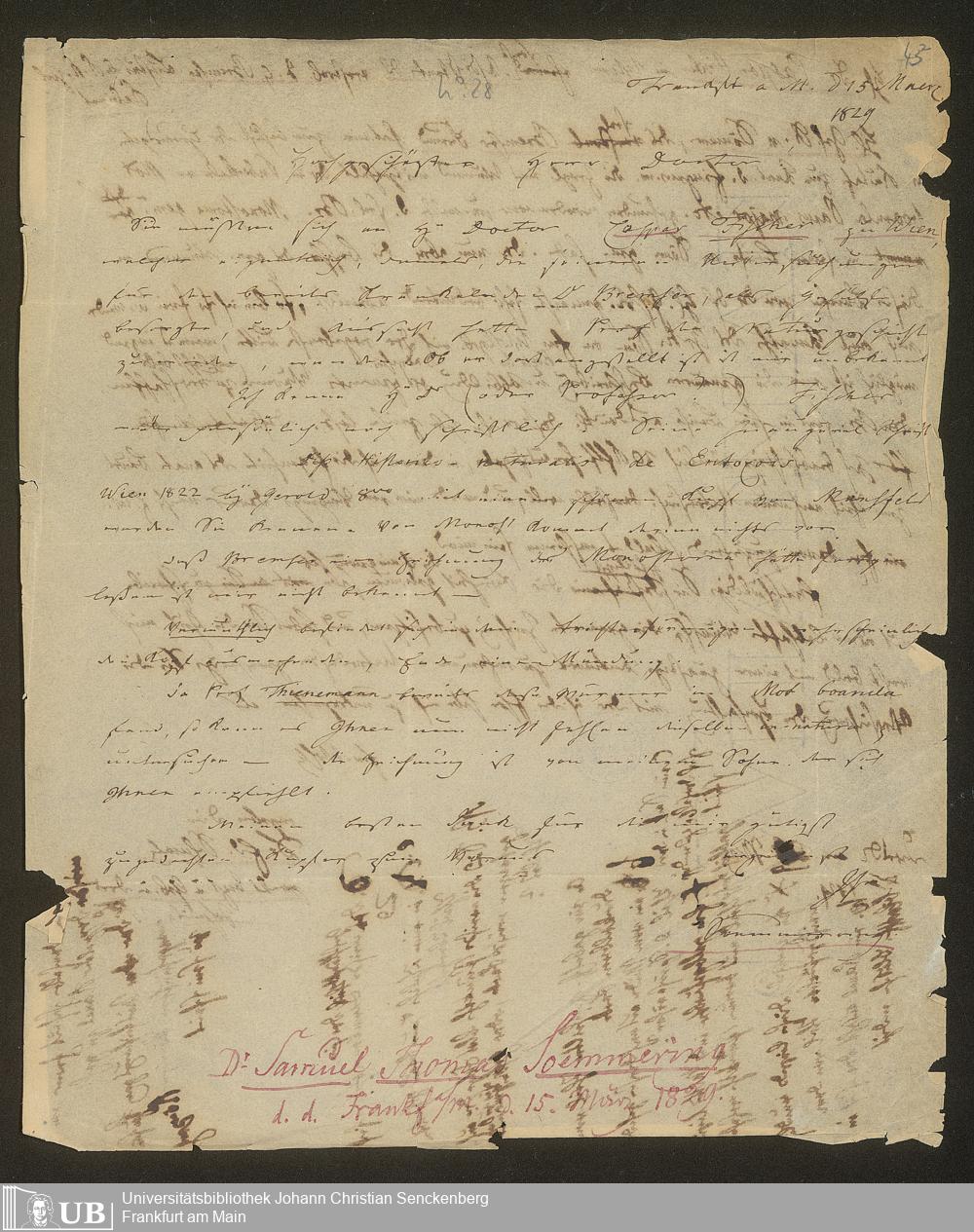 Ms. Ff. S. Th. v. Soemmerring 8 B - Nachlass Samuel Thomas von Soemmerring - 8. Briefwechsel. - B. Briefe von Soemmerring