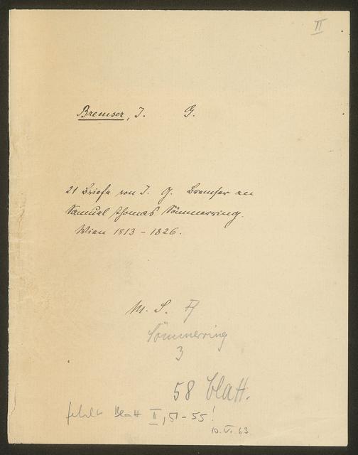 Ms. Ff. S. Th. v. Soemmerring 8 A - Nachlass Samuel Thomas von Soemmerring. - 8. Briefwechsel. - A. Briefe an Soemmerring
