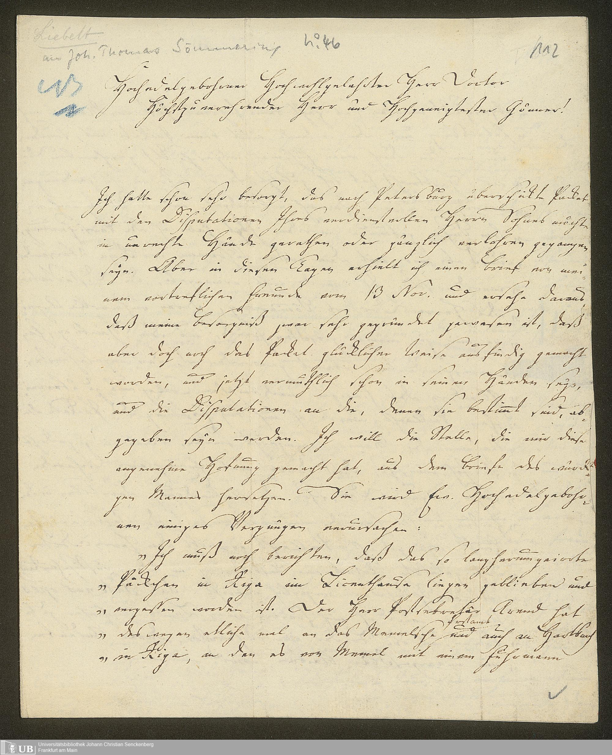 Ms. Ff. S. Th. v. Soemmerring 8 A - Nachlass Samuel Thomas von Soemmerring. - 8. Briefwechsel. - A. Briefe an Soemmerring