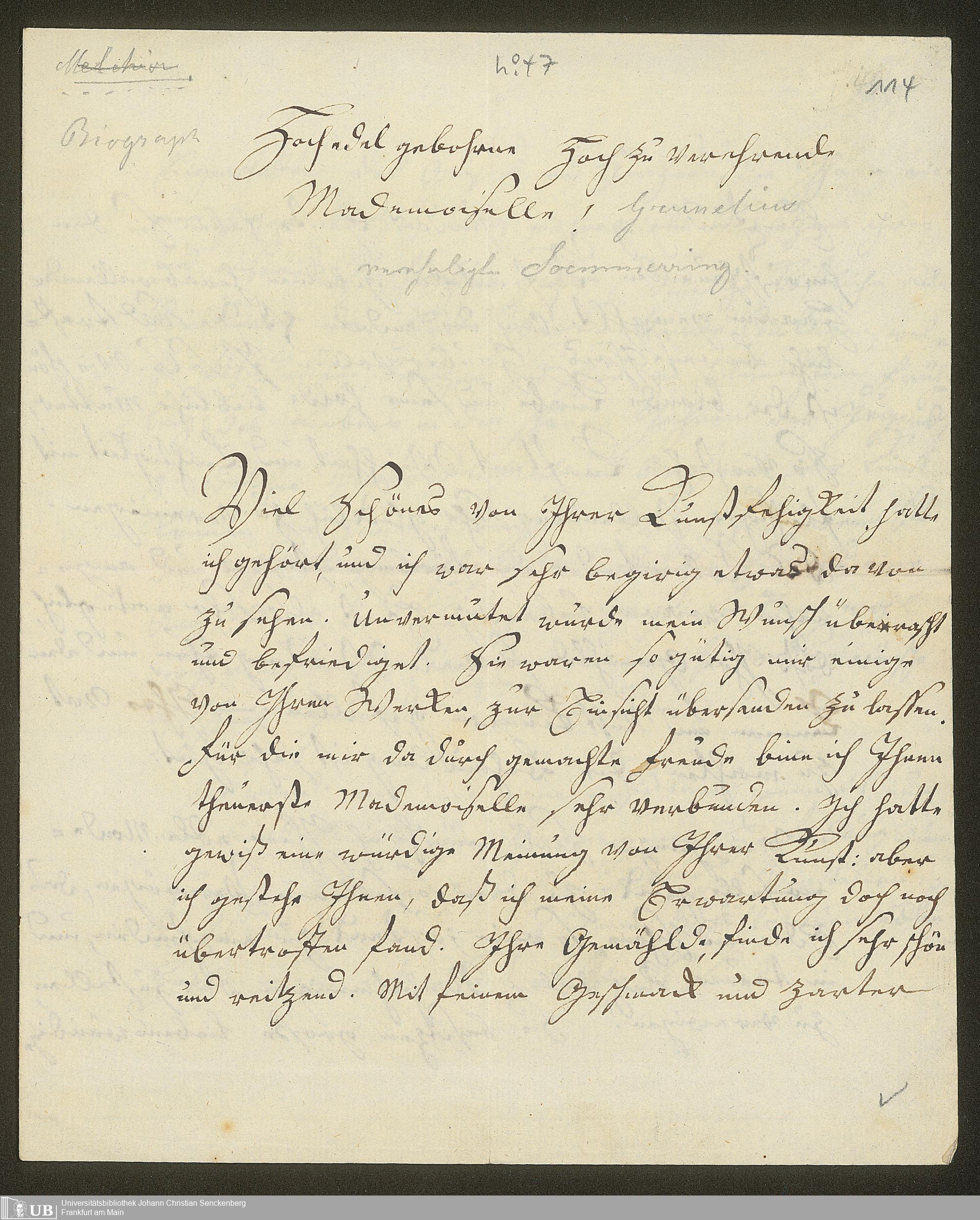 Ms. Ff. S. Th. v. Soemmerring 8 A - Nachlass Samuel Thomas von Soemmerring. - 8. Briefwechsel. - A. Briefe an Soemmerring