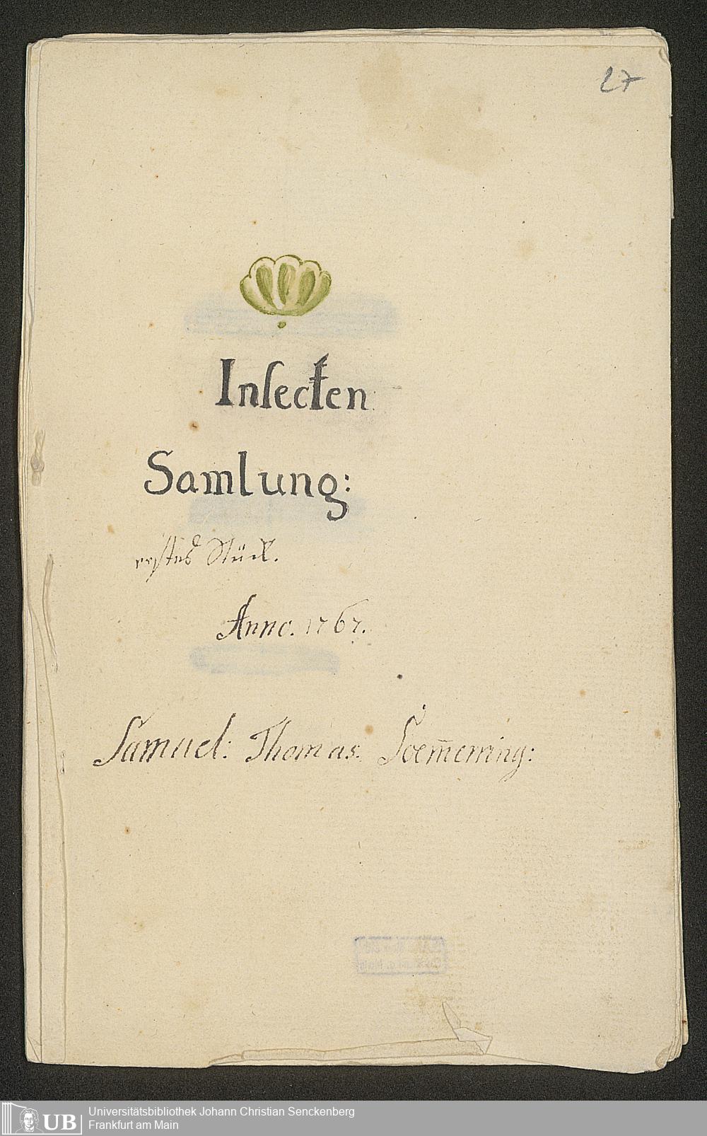 Ms. Ff. S. Th. v. Soemmerring 7 A - Blumen und Kräuter nach dem Leben gemahlet von Samuel Thomas Soemerring. Insecten Samlung: erstes Stück