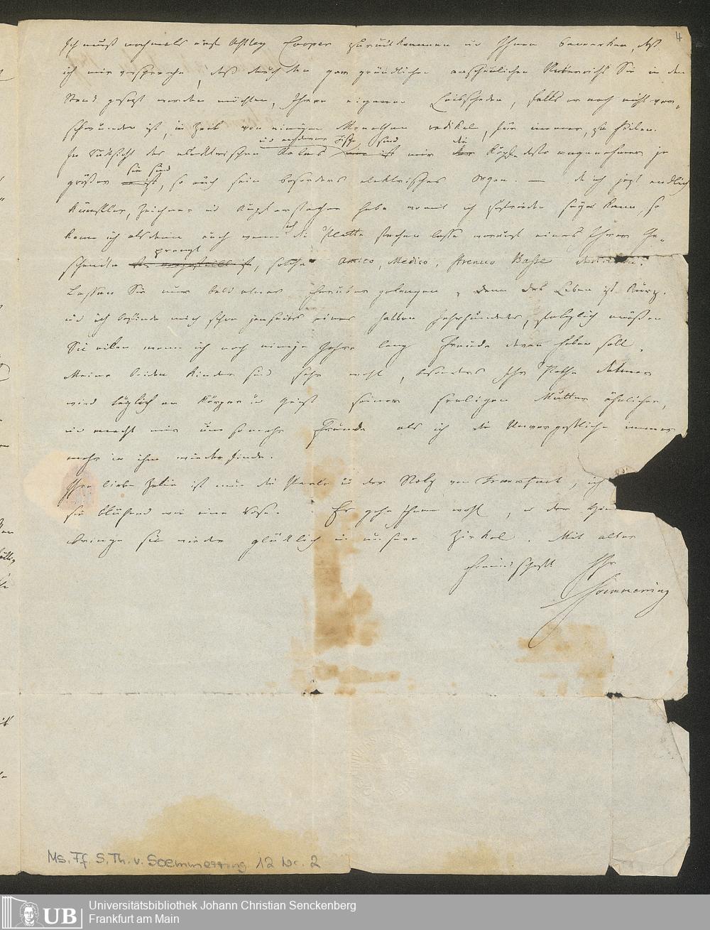 Ms. Ff. S. Th. v. Soemmerring 12 - Nachlass Samuel Thomas von Soemmerring - 12. Briefe von Samuel Thomas von Soemmerring an verschiedene Adressaten