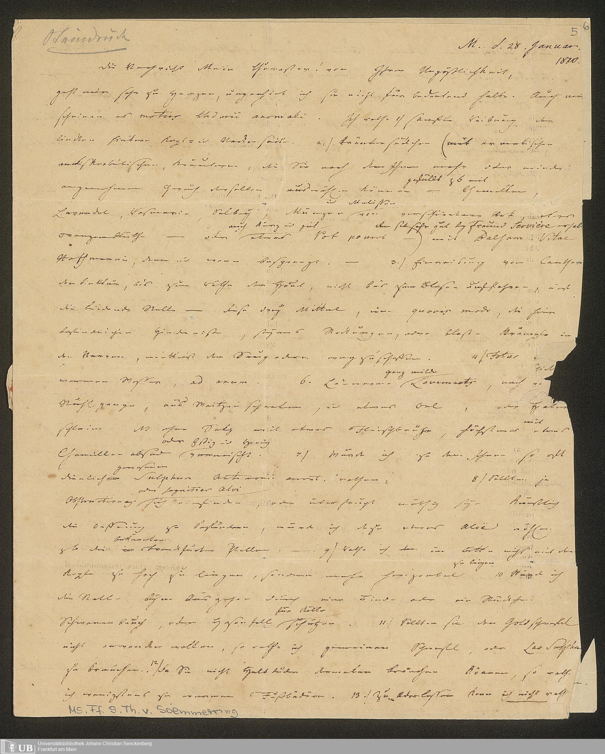 Ms. Ff. S. Th. v. Soemmerring 12 - Nachlass Samuel Thomas von Soemmerring - 12. Briefe von Samuel Thomas von Soemmerring an verschiedene Adressaten