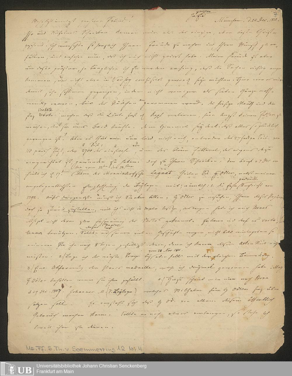 Ms. Ff. S. Th. v. Soemmerring 12 - Nachlass Samuel Thomas von Soemmerring - 12. Briefe von Samuel Thomas von Soemmerring an verschiedene Adressaten