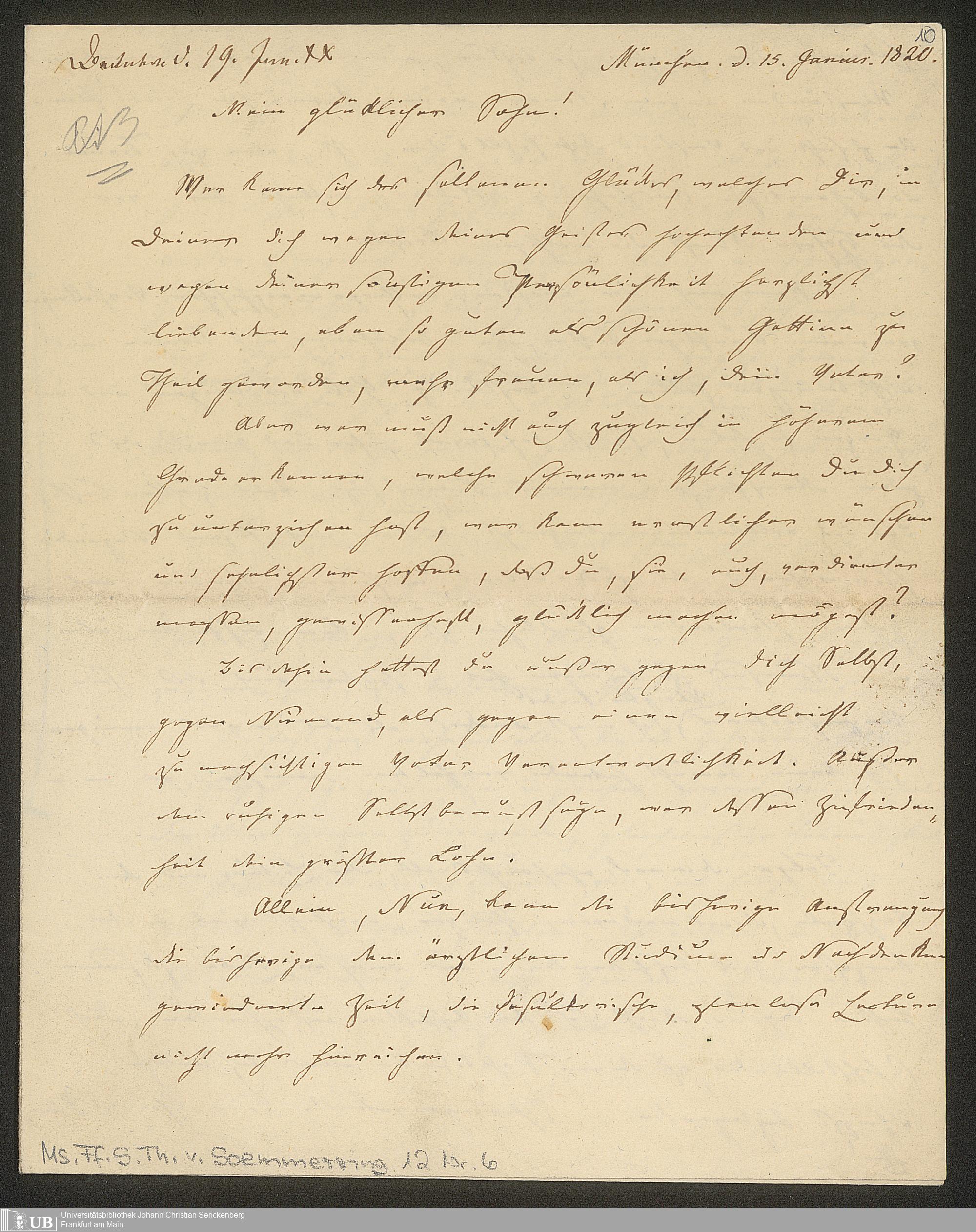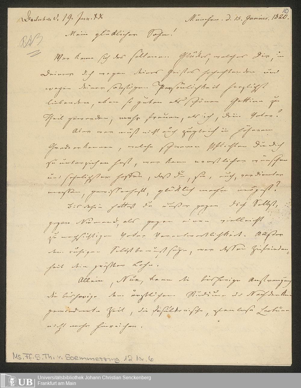 Ms. Ff. S. Th. v. Soemmerring 12 - Nachlass Samuel Thomas von Soemmerring - 12. Briefe von Samuel Thomas von Soemmerring an verschiedene Adressaten