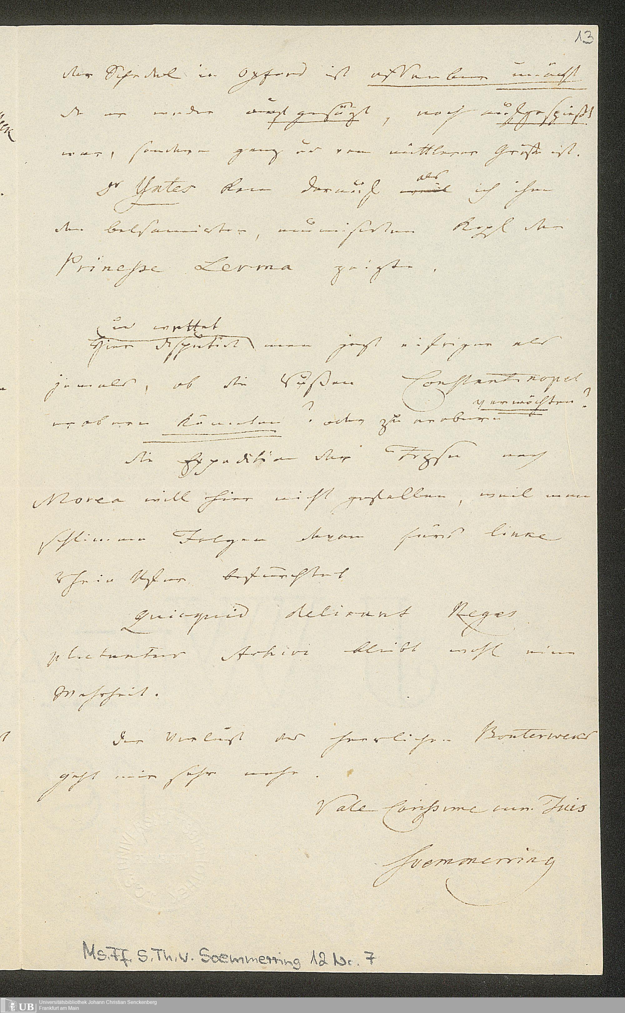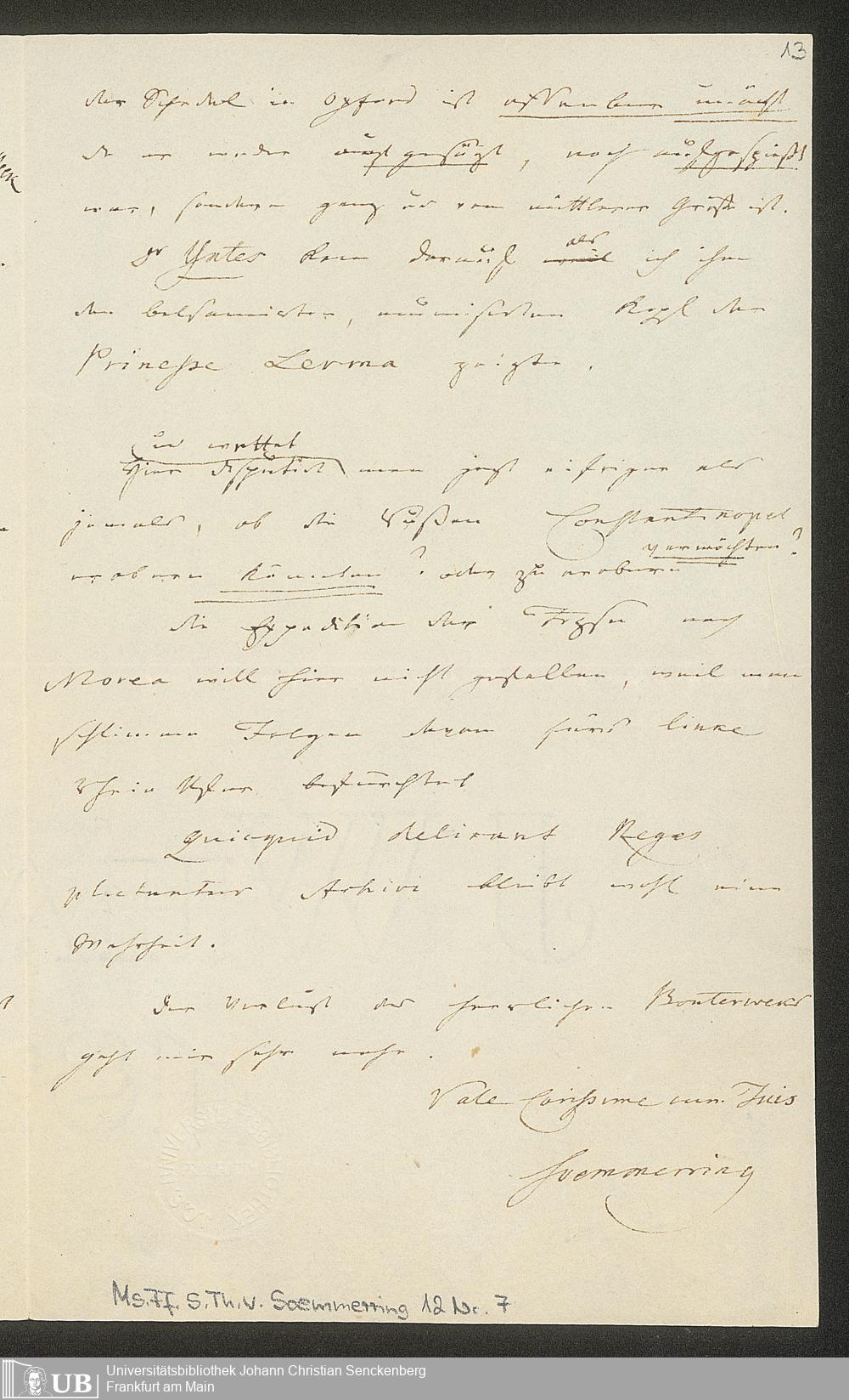 Ms. Ff. S. Th. v. Soemmerring 12 - Nachlass Samuel Thomas von Soemmerring - 12. Briefe von Samuel Thomas von Soemmerring an verschiedene Adressaten