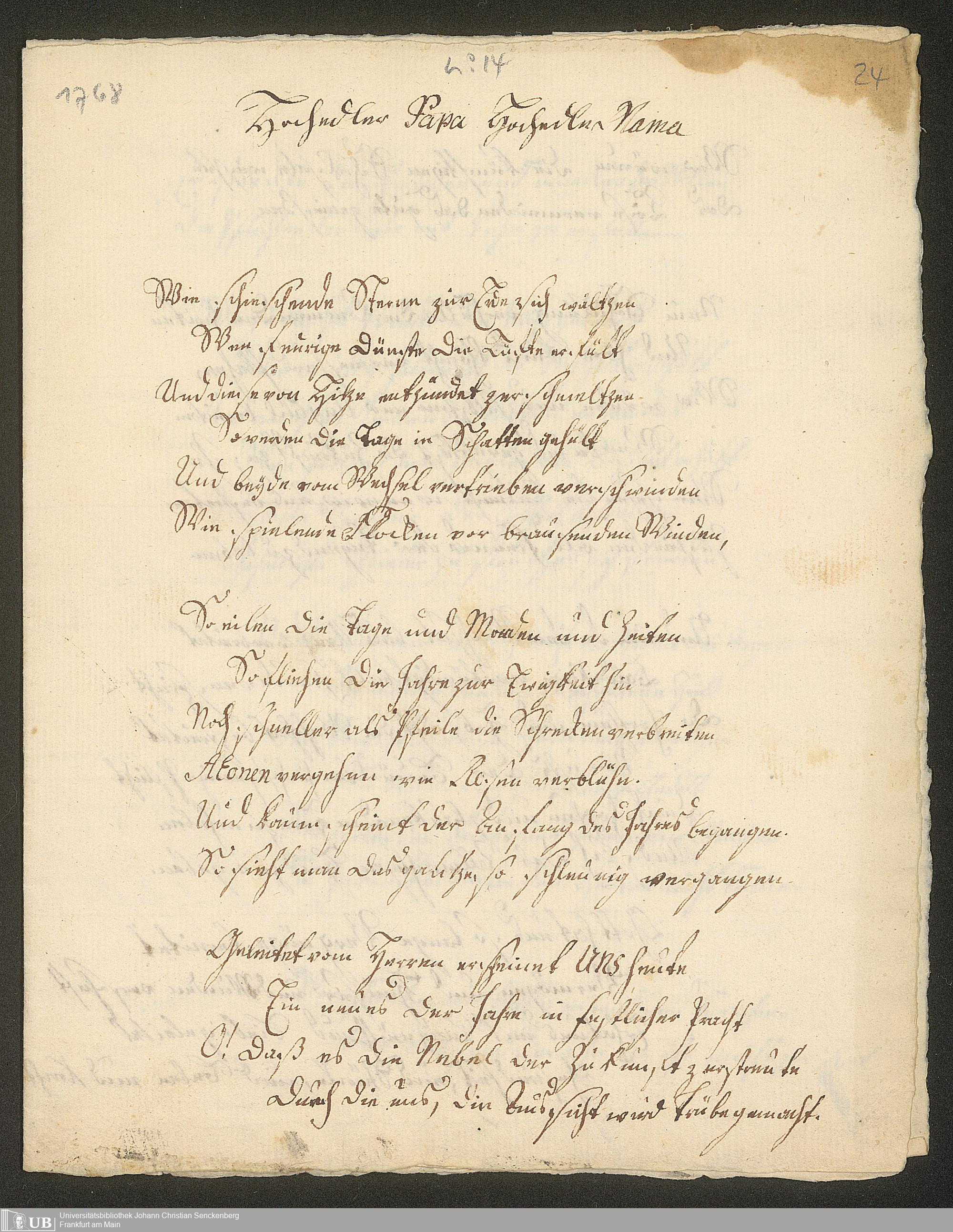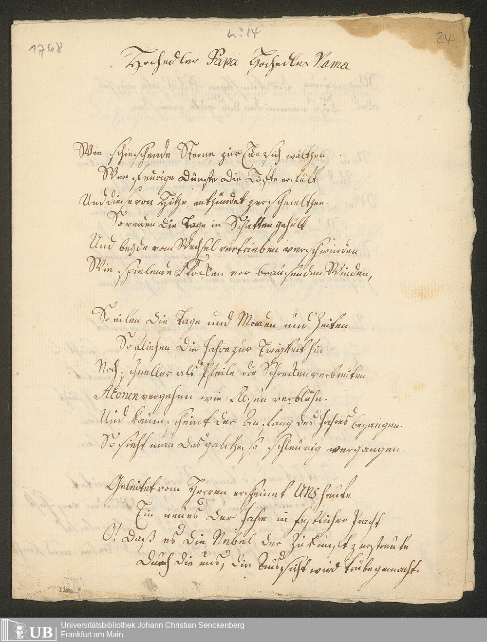Ms. Ff. S. Th. v. Soemmerring 7 B - 43 Neujahrs-, Weihnachts-, Geburtstags- und Namenstagsgratulationen in Versen und in Prosa an beide Eltern, besonders an den Vater gerichtet. 1 Neujahrsschreiben der Mutter.